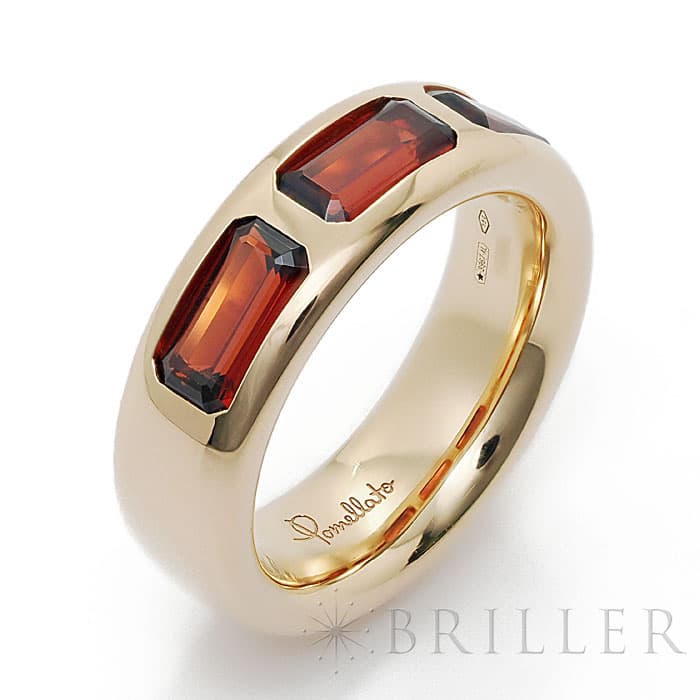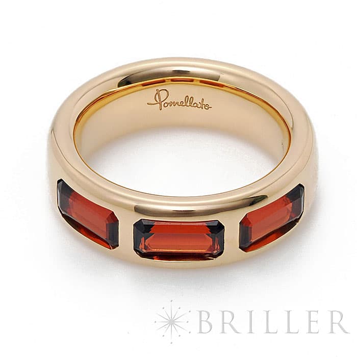 1967年にミラノで生まれたジュエリーブランド「ポメラート(POMELLATO)」。 ポメラート創立50周年を機に新たに加わった「イコニカ」は、ボリューム感のある大きさながら美しい曲線美を描き上品な雰囲気を演出するシリーズです。 こちらのリングはイコニカらしい美しい曲線美のデザインにギリシャ語で「燃える眼」を意味する「パイロープ」の名が付いたガーネット「パイロープガーネット」が3石セッティングされています。