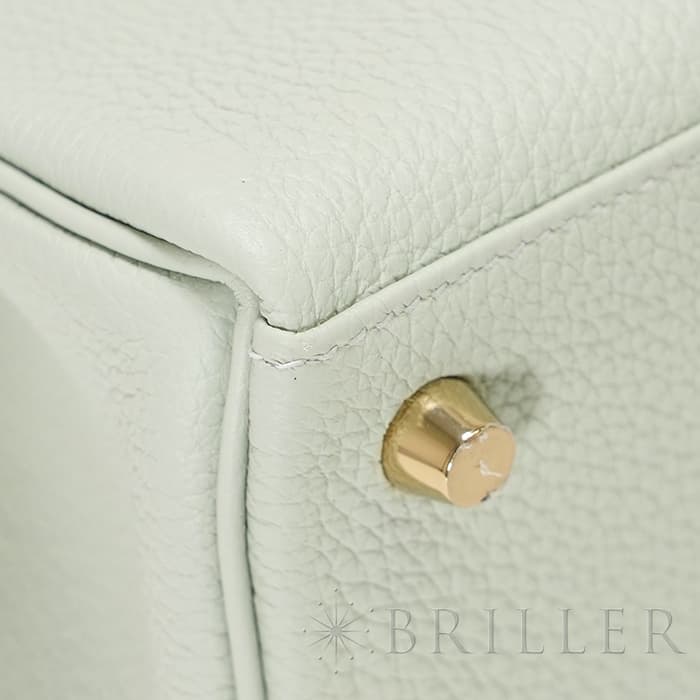 素材はやわらかな「トゴ」で、光の入り方によって表情を変える美しい革が特徴。パステル調のさわやかなグリーンの「ヴェールフィズ」に、ゴールド金具が映えるバッグです。 ハンドバッグとして軽やかに、付属のショルダーを使えば肩に掛けるスタイルでもお楽しみいただけます。