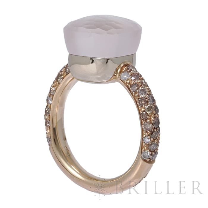 POMELLATO ポメラート ヌード リング ローズクオーツ カルセドニー ブラウンダイヤモンド ローズゴールド ホワイトゴールド PAC0040_O7000_BRCQR 10号