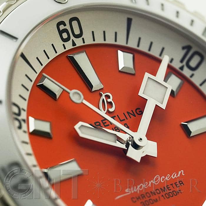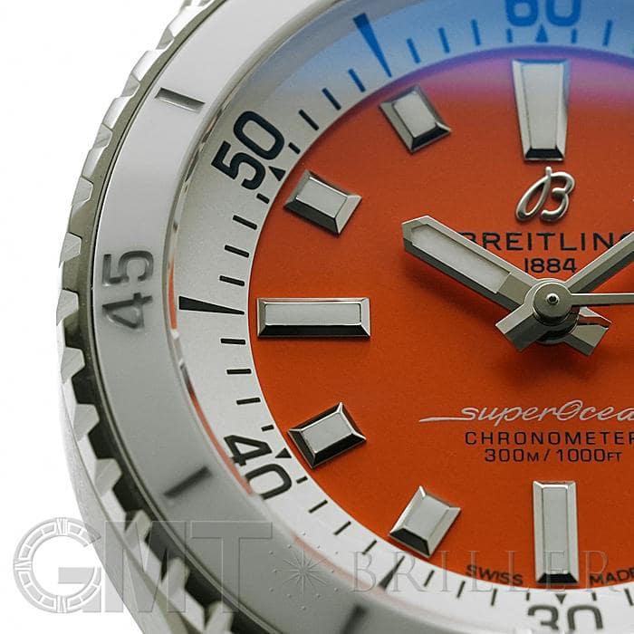 1960年代~70年代の「スーパーオーシャン スローモーション」をルーツとして2022年に誕生した新しいスーパーオーシャン。36mmのケースに、逆回転防止ベゼルと300m防水を備えた本格ダイバーズウォッチです。シンプルなデザインに、オレンジカラーの文字盤が鮮やかに映え、ファッション性の高さも抜群な1本に仕上がっています。