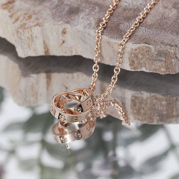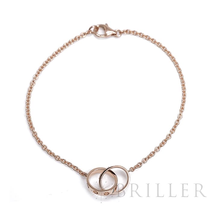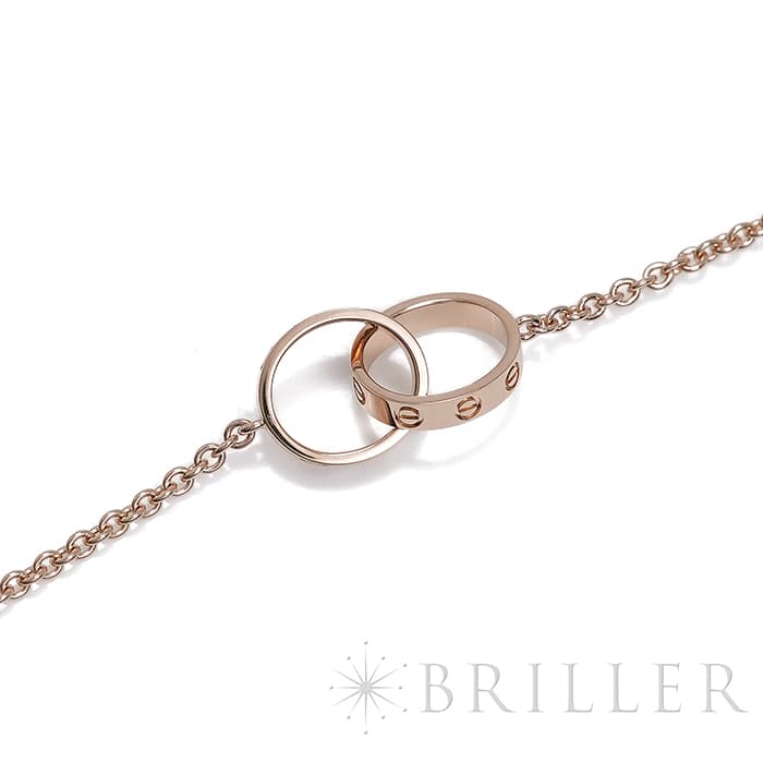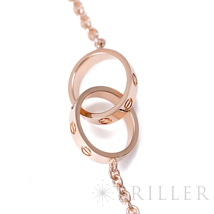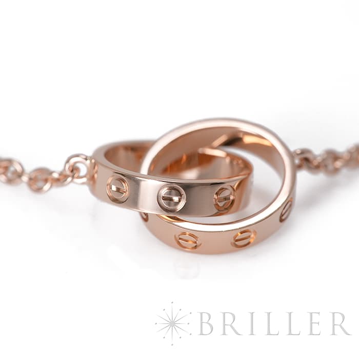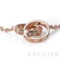 世界5大ジュエラーのひとつである「カルティエ」。1970年代にニューヨークで生まれたLOVE コレクションは、愛の絆を象徴するビスモチーフが特徴のコレクションです。18Kピンクゴールド製のチェーンに2つのリングモチーフが重なり合ったデザインはモチーフが小さくて華奢な為、ブランドの主張を抑えながらも楽しむことができ、オススメのジュエリーです。