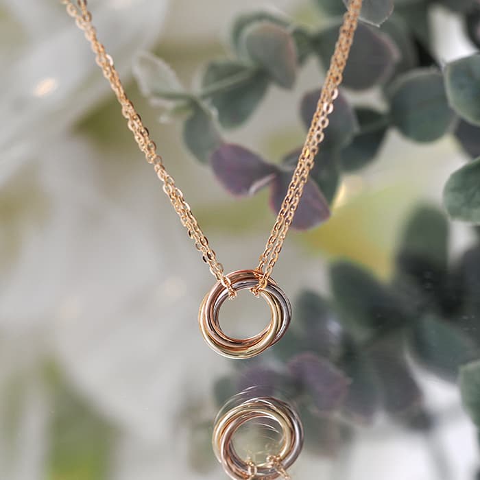 フランスで誕生し世界五大ジュエラーの一角である「カルティエ」。独創的なデザインや技術力の高さから圧倒的な支持を受けるブランドです。1924年に生まれたトリニティは英語で「3重、3つ組、3つ」を意味しその名の通り3つのゴールドが連なったデザインが特徴的です。肌馴染みの良いローズゴールドのチェーンは2重になっており小さく可愛らしいモチーフがさりげなく輝きを放ちます。