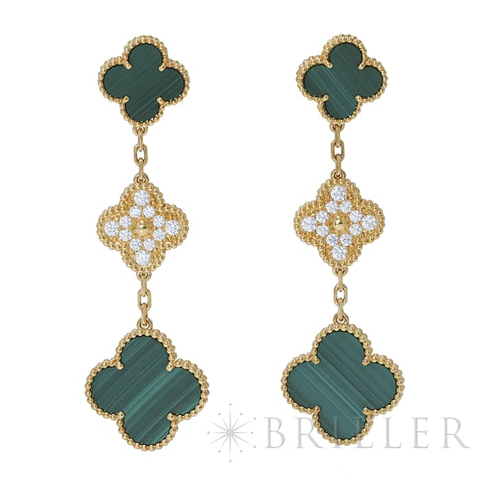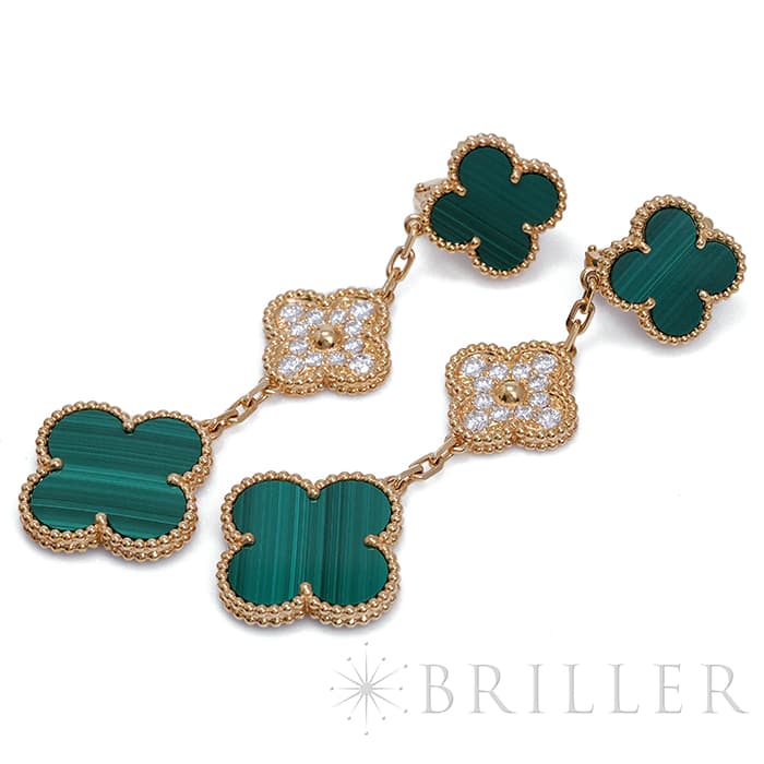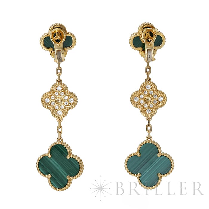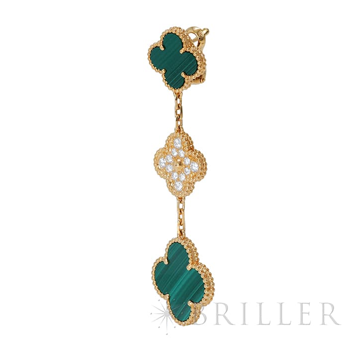 Van Cleef & Arpels ヴァン クリーフ&アーペル アルハンブラ マジック アルハンブラ イヤリング ピアス 3モチーフ イエローゴールド ダイヤモンド マラカイト VCARO9II00