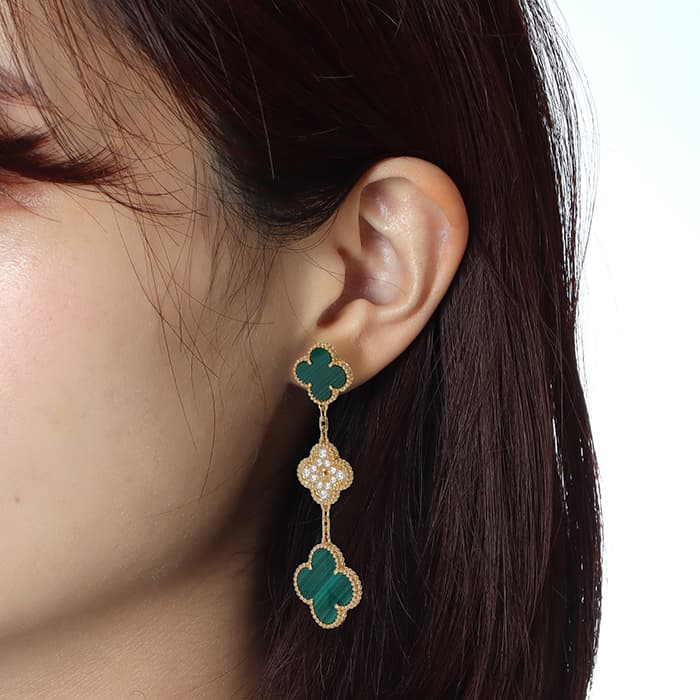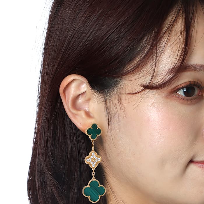 ヴァン クリーフ&アーペル マジック アルハンブラ イヤリング ピアス 3モチーフ イエローゴールド ダイヤモンド マラカイト VCARO9II00 Van Cleef & Arpels