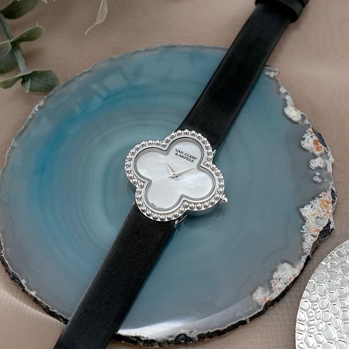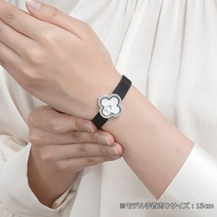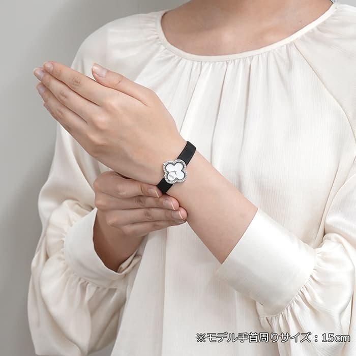 フランスに本店のある宝石、時計、香水を扱うハイジュエラー「ヴァンクリーフ&アーペル」。 1906年に誕生し、数多くのセレブリティから愛されているブランドとなります。 定番「アルハンブラ」のスモールサイズウォッチモデルです。ホワイトゴールドケースのアルハンブラに「ホワイトシェル」文字盤は大変上品で美しく、ジュエリーのように使用できる腕時計になっています。