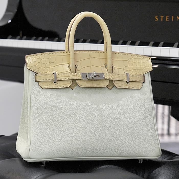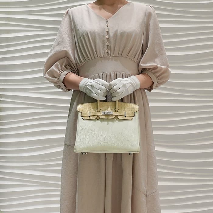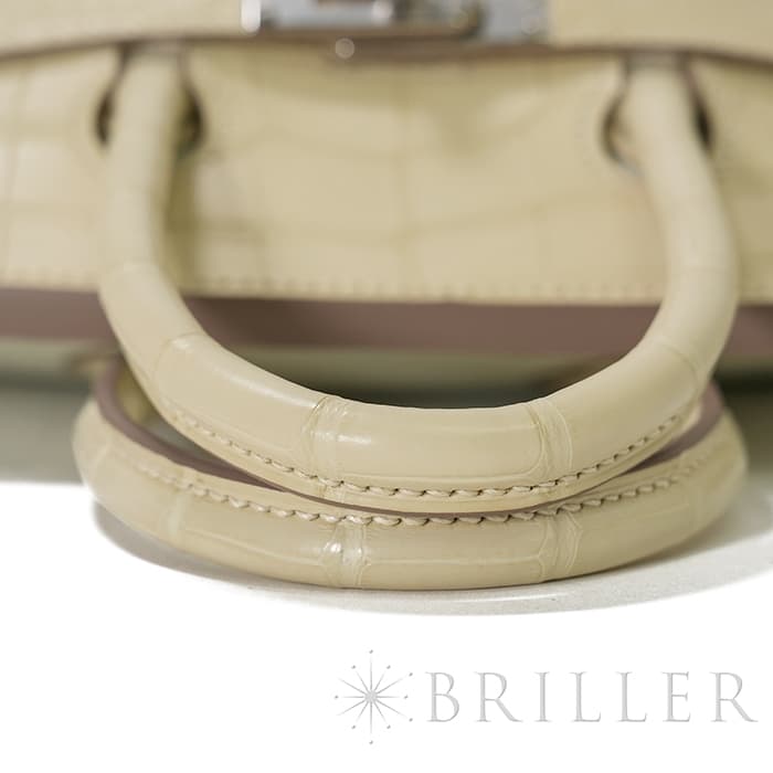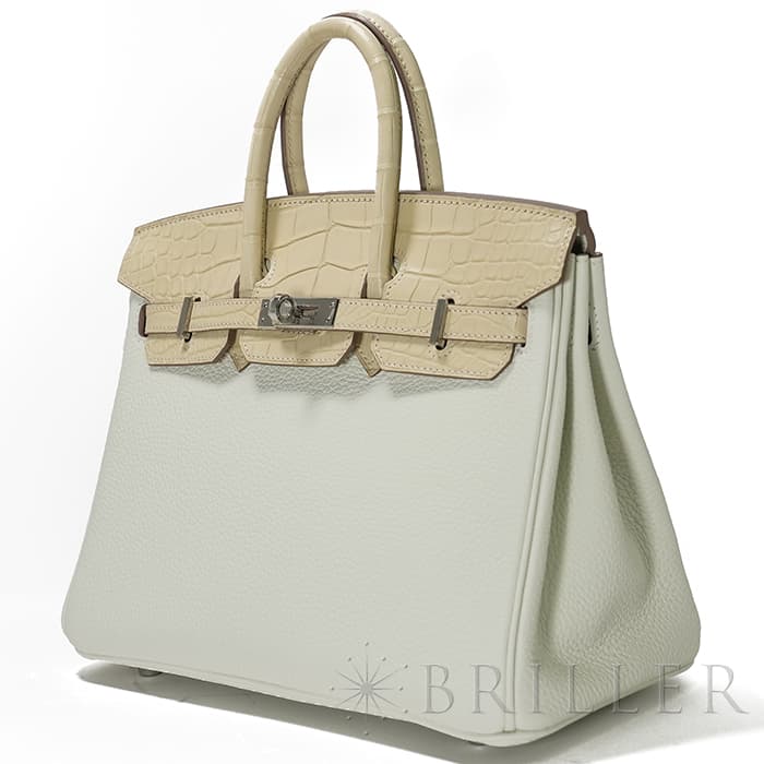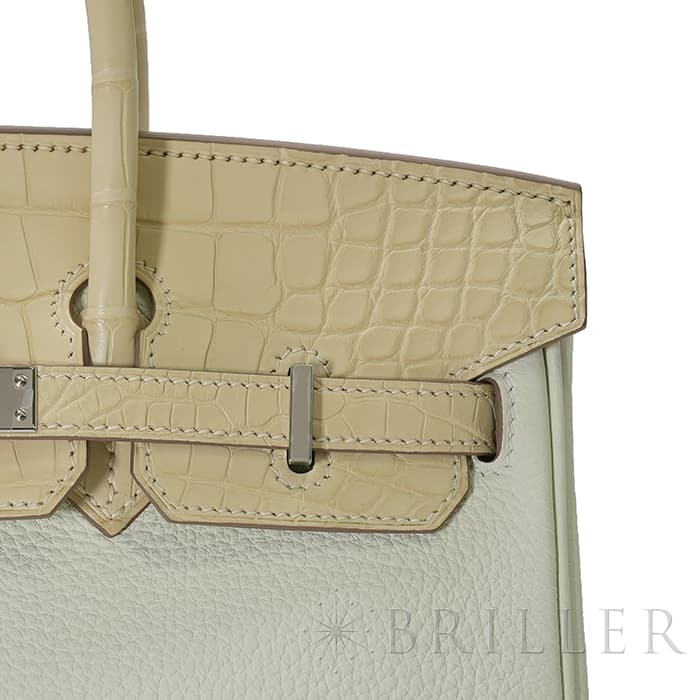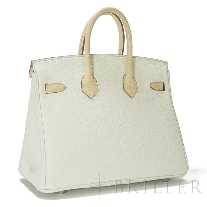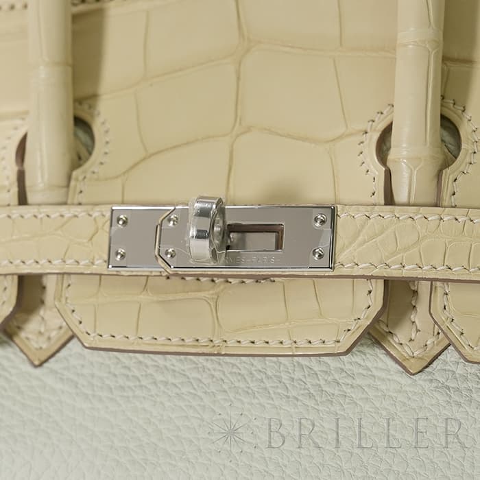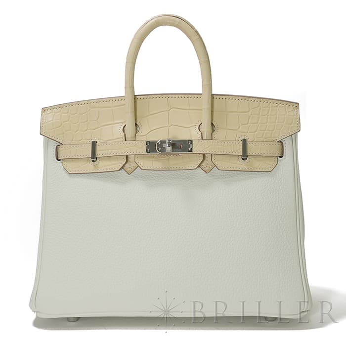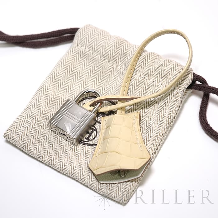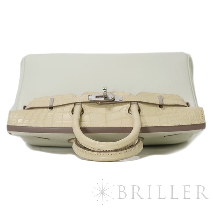 エルメス バーキンタッチ 25 トゴ アリゲーターマット バニラ マッシュルーム シルバー金具