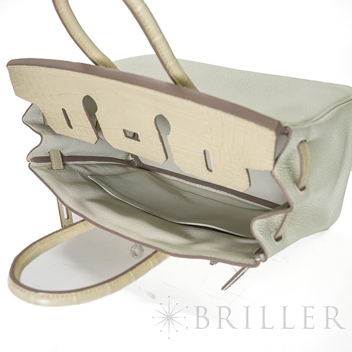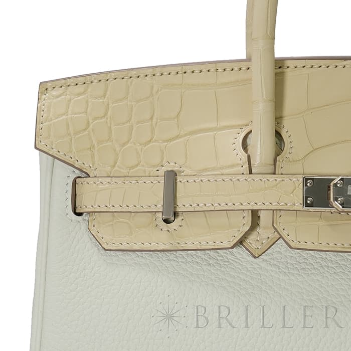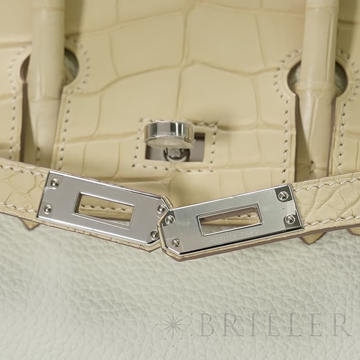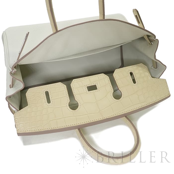 HERMES エルメス バーキン タッチ 25 トゴ アリゲーターマット バニラ マッシュルーム シルバー金具