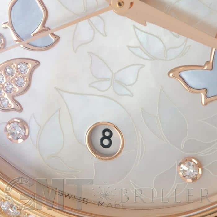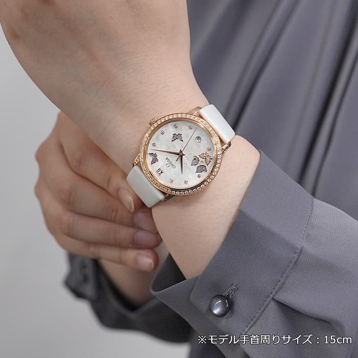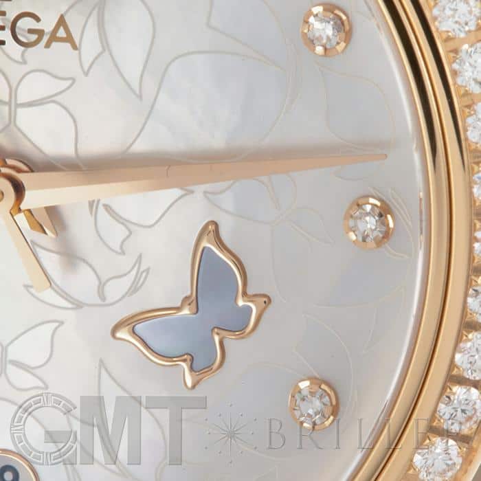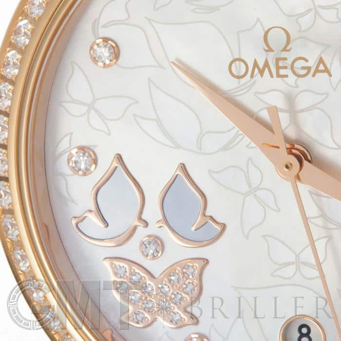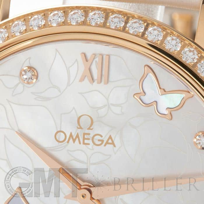 オメガ「デ・ヴィル」は、1967年にシンプルで流行に左右されず、年齢やスタイルを問わず着けられる時計として登場しました。レッドゴールドケースのベゼルにダイヤモンドがセッティングされ、ダイヤルにはバタフライの模様をデザイン、9ポイントダイヤモンドインデックスがシリーズの名前の由来である、「デ・ヴィル」(仏語「都会的な」)に相応しい、控え目でありながらエレガントな仕上がりになっています。