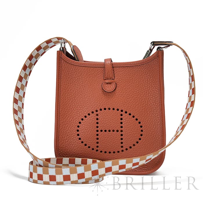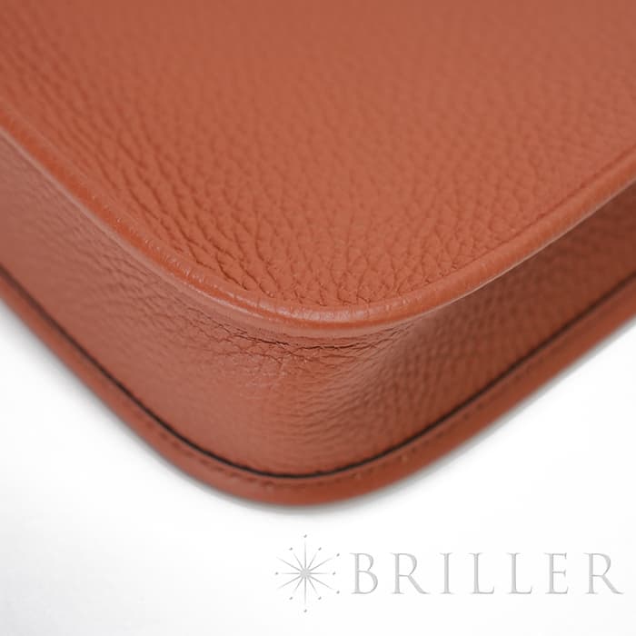馬の蹄鉄をモチーフにした「エヴリン」。前面に大きく配された“H”のパンチングが特徴で、一目でエルメスと分かるデザインです。TPMはミニ財布やキーケース、コンパクトが収まる使いやすいサイズ感。肩掛け・斜め掛けの2通りでお使いいただけます。ゴールドより赤みのあるキュイーブルは秋に人気の色味。さらに通常別売りのバンドリエールが付属する流通の少ない希少な仕様です。