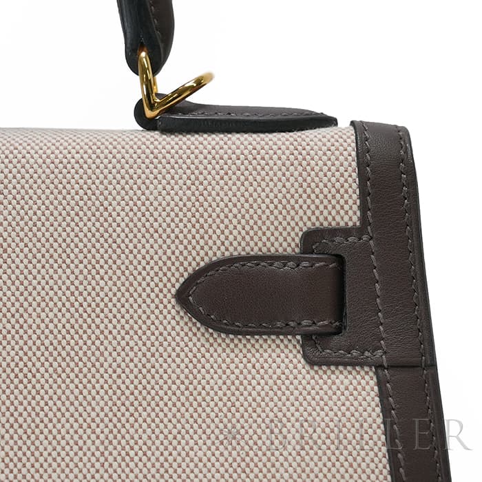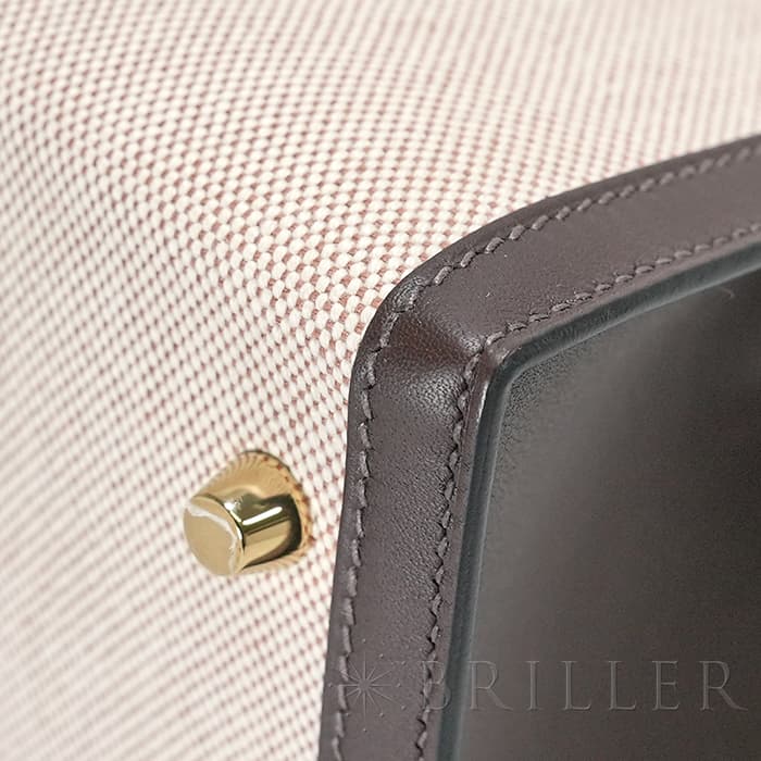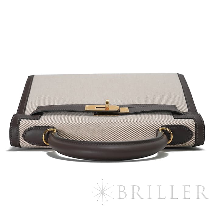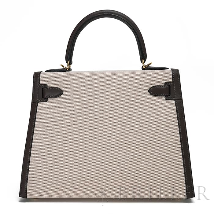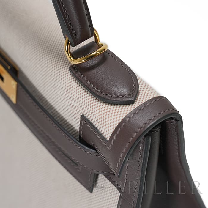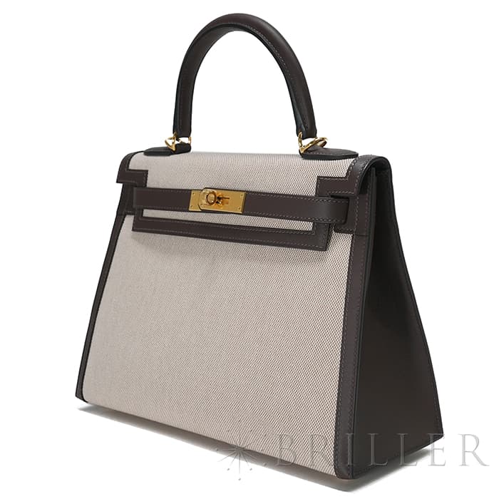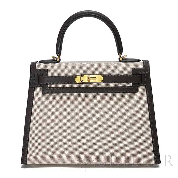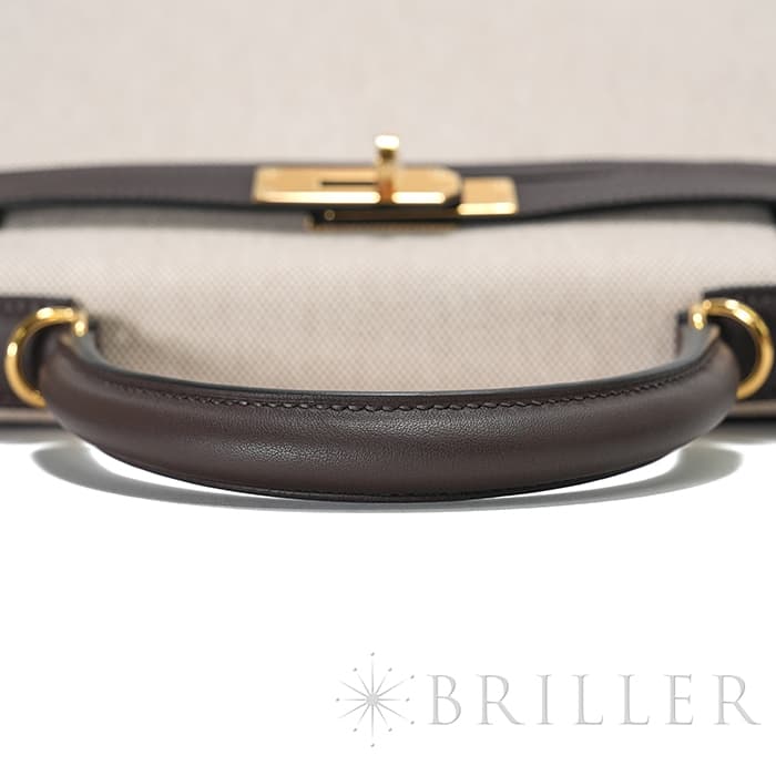 エスメス ケリー28 外縫い ヴォースイフト トワルアッシュ エクルベージュ モカ ゴールド金具 HERMES