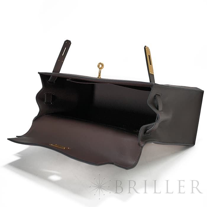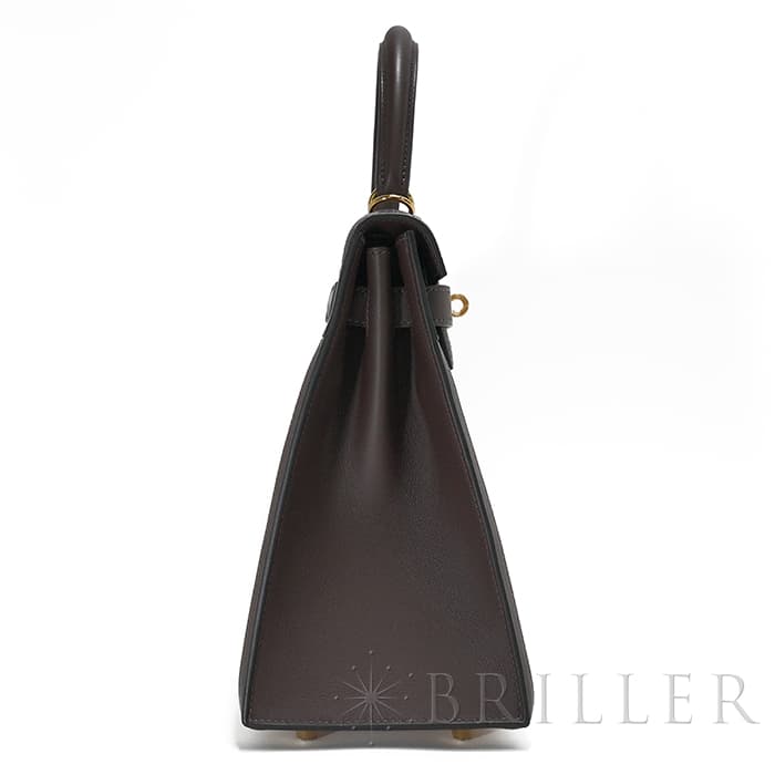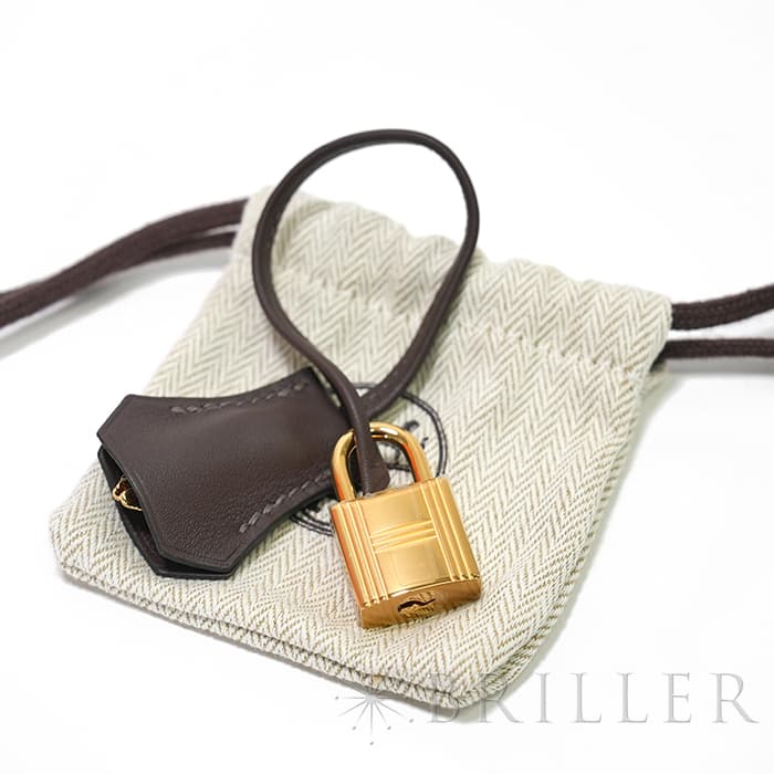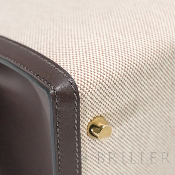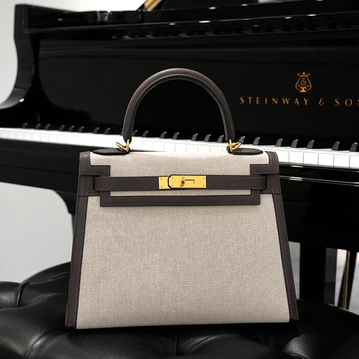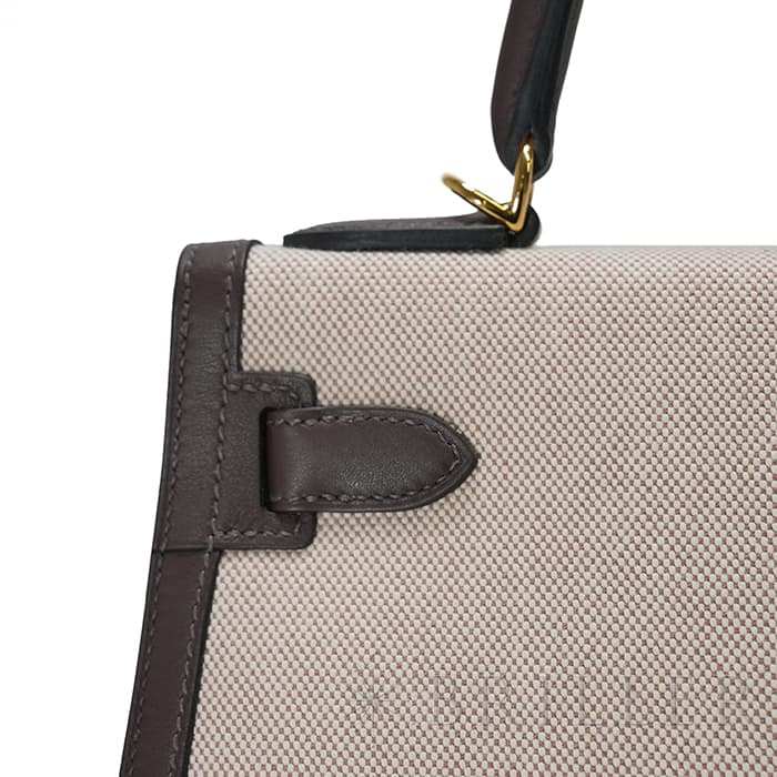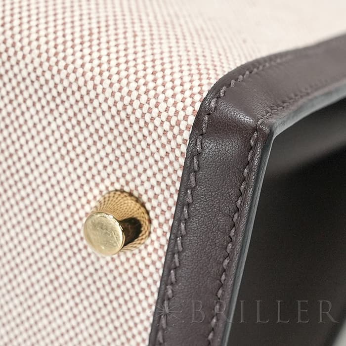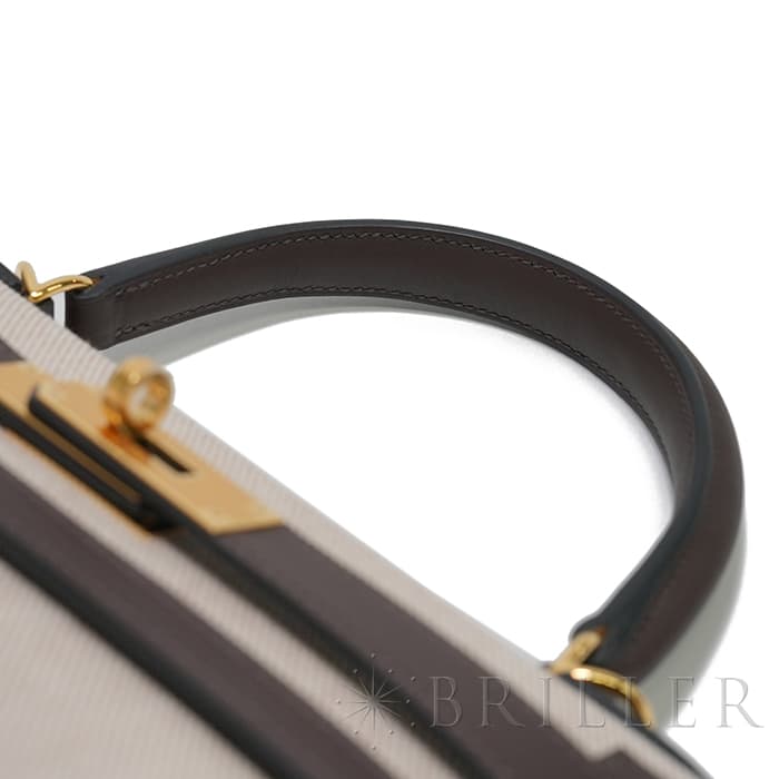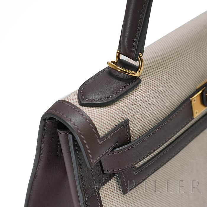 エスメス ケリー28 外縫い ヴォースイフト トワルアッシュ エクルベージュ モカ ゴールド金具 HERMES
