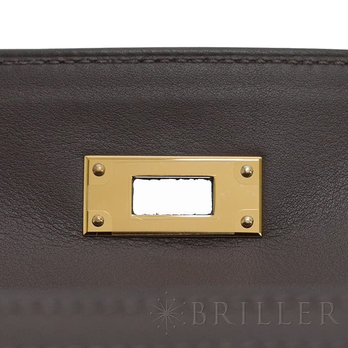 HERMES エルメス ケリー 28 外縫い ヴォースイフト トワルアッシュ エクルベージュ モカ ゴールド金具