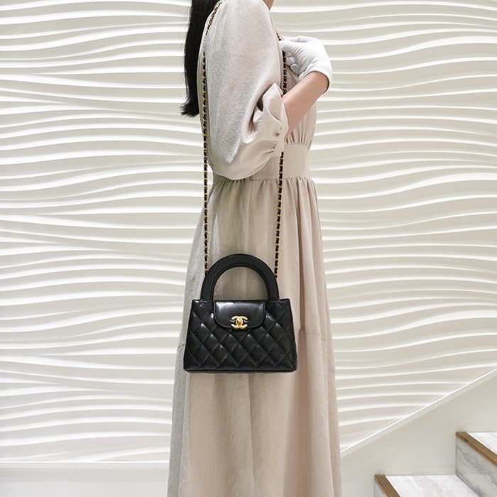 シャネルの中でも人気の高いブラックが入荷いたしました。クラシックさとアイコニックさを併せ持ったなミニ ショッピング バッグ です。ショルダーストラップを使って肩掛けスタイルで、様々なシーンでエレガントでキュートなコーディネートを楽しめ、一つは欲しい万能バッグです。