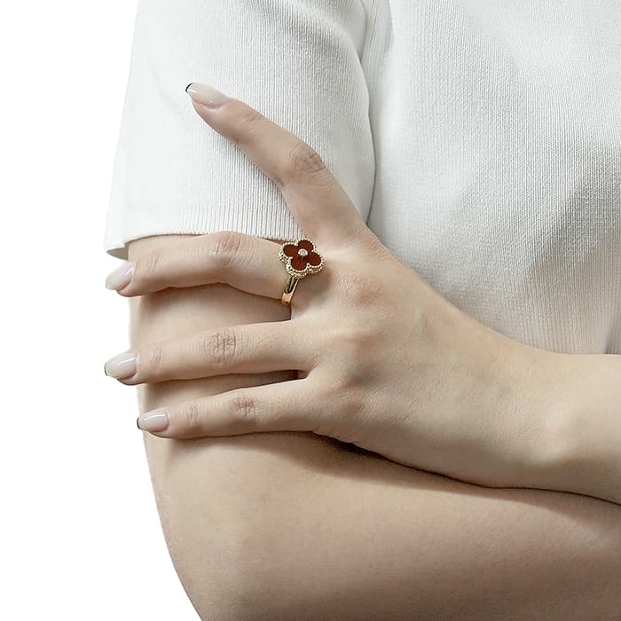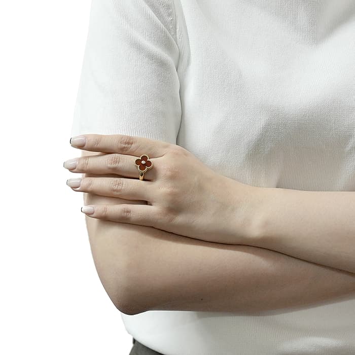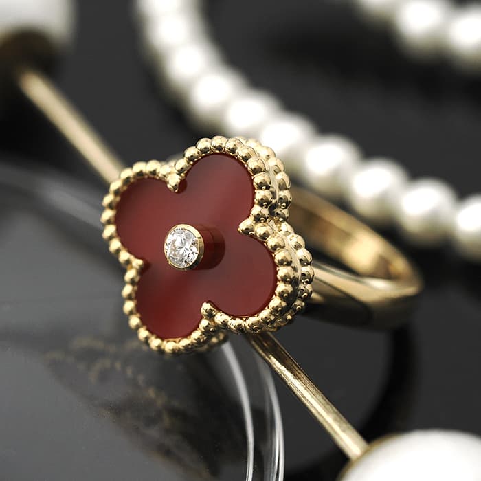 ヴァン クリーフ&アーペル ヴィンテージ アルハンブラ リング イエローゴールド カーネリアン ダイヤモンド VCARD40800 9号