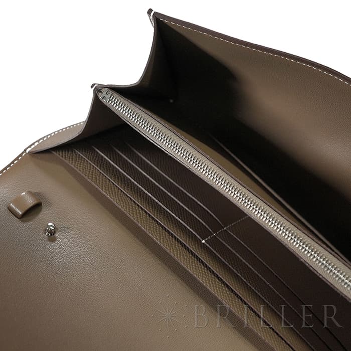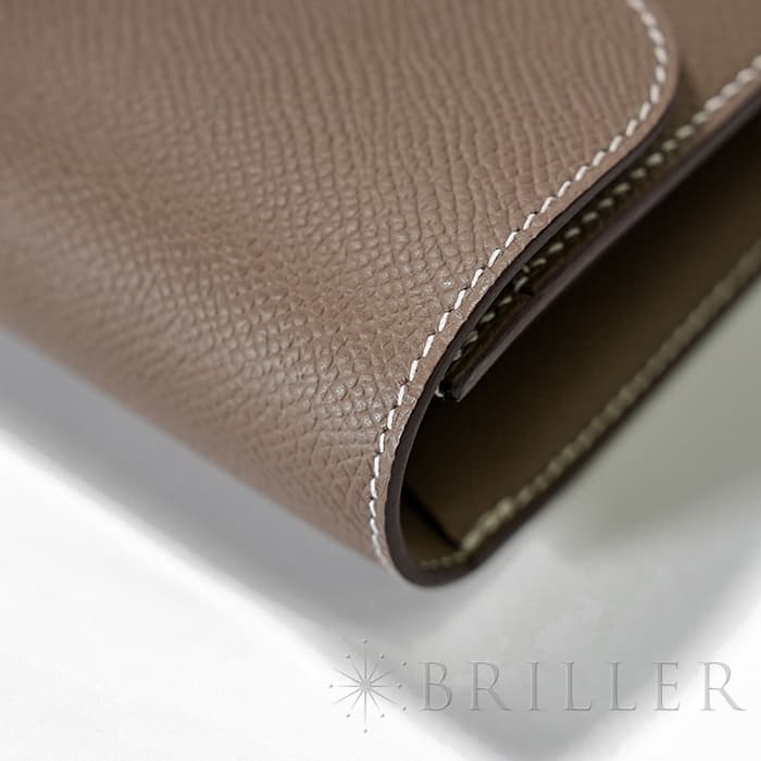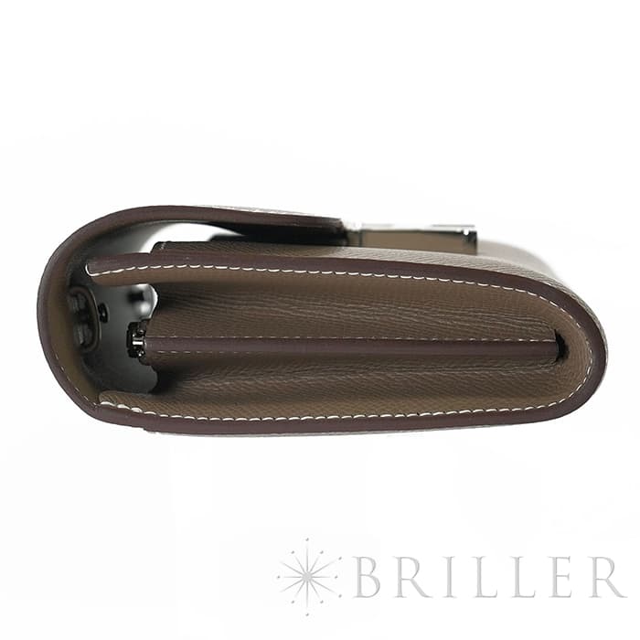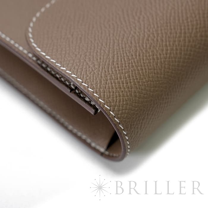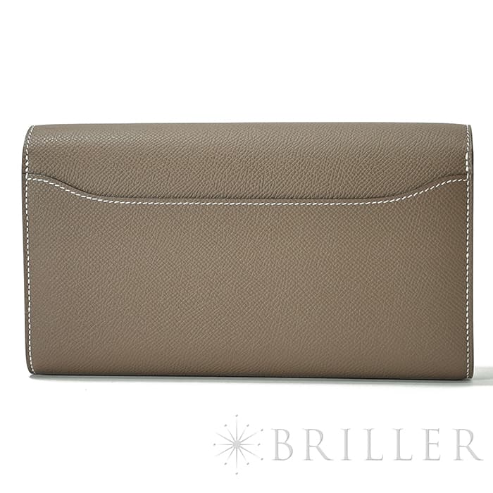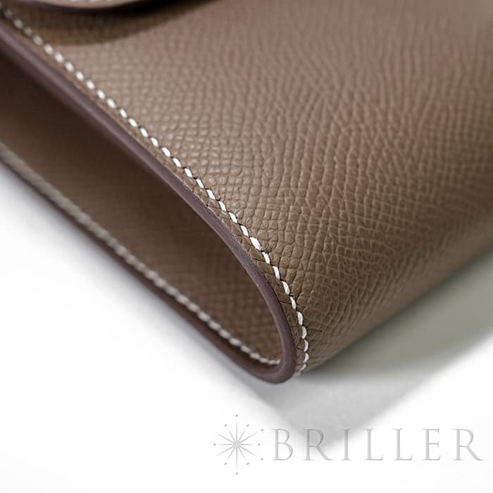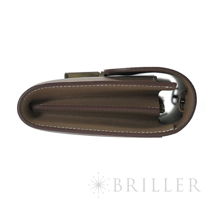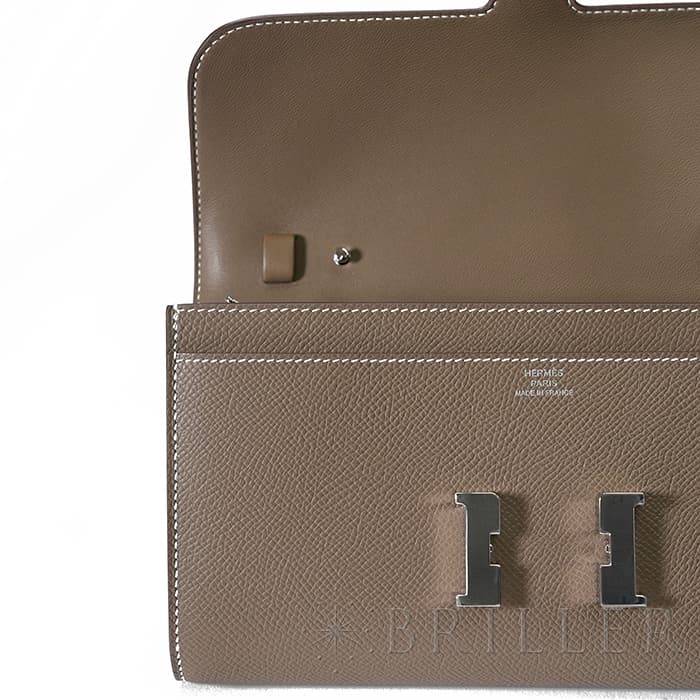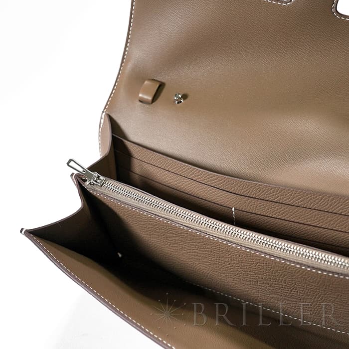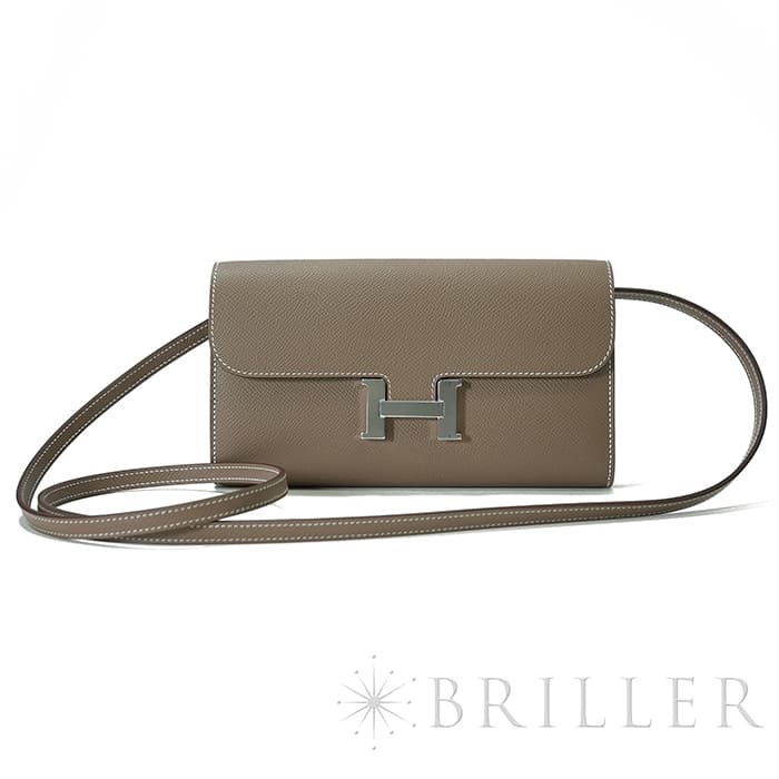 ブランドの頭文字“H”が象徴的な「コンスタンス」から派生した〈コンスタンス トゥーゴー〉。クラッチ、ウォレット、ストラップを付けたポシェットと多彩に使い分けでき、現代のライフスタイルに寄り添う設計です。内装はカード6枚に加え、スマートフォンが収まるフリーポケット2室と中央のファスナーポケットを備え実用性も十分。型崩れしにくく傷に強いエプソン素材と、柔らかなエトゥープにシルバー金具が凛とした品格を添えます。