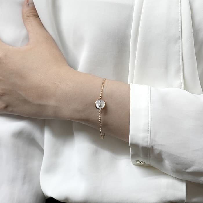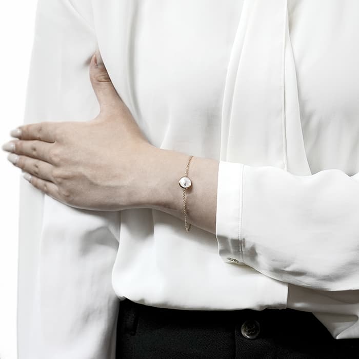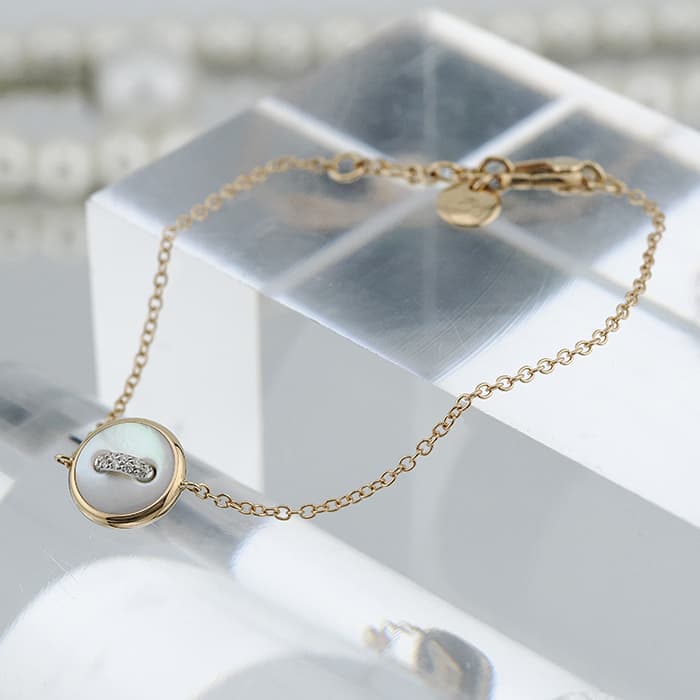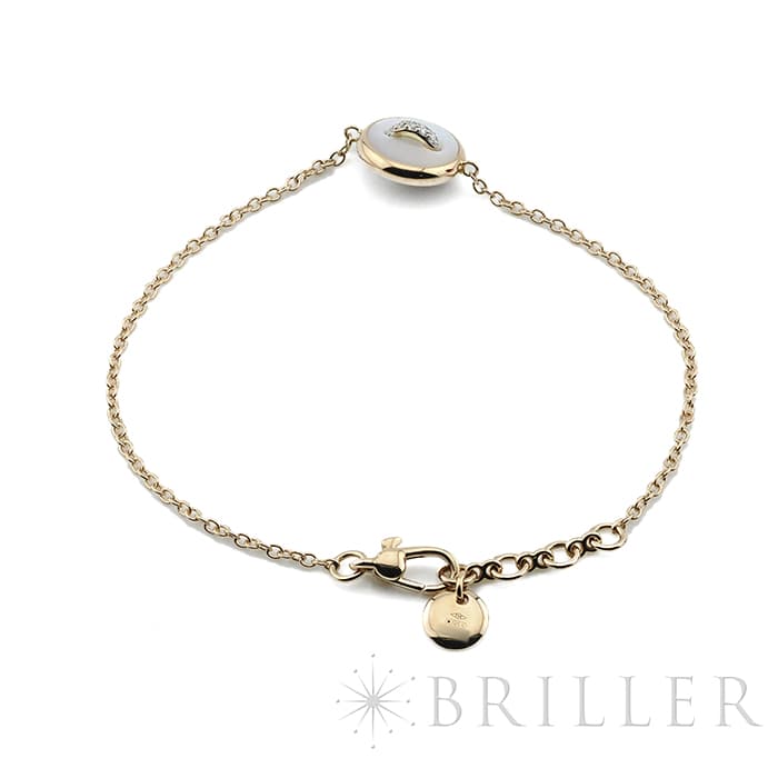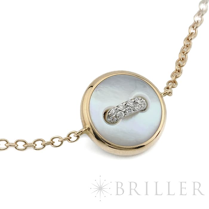 1967年にミラノで生まれたジュエリーブランド「ポメラート(POMELLATO)」。1974年に制作された「ボタン」風デザインが、新作コレクションとしてリバイバルしました。リバーシブル仕様になっており片側にはホワイトマザーオブパールの中央にダイヤモンドをセッティング。逆側にはグレーマザーオブパールがあしらわれています。気負わないミラノのスタイルを象徴する爽やかなデザインです。