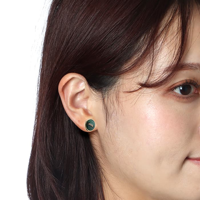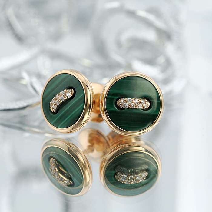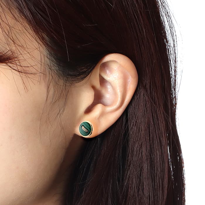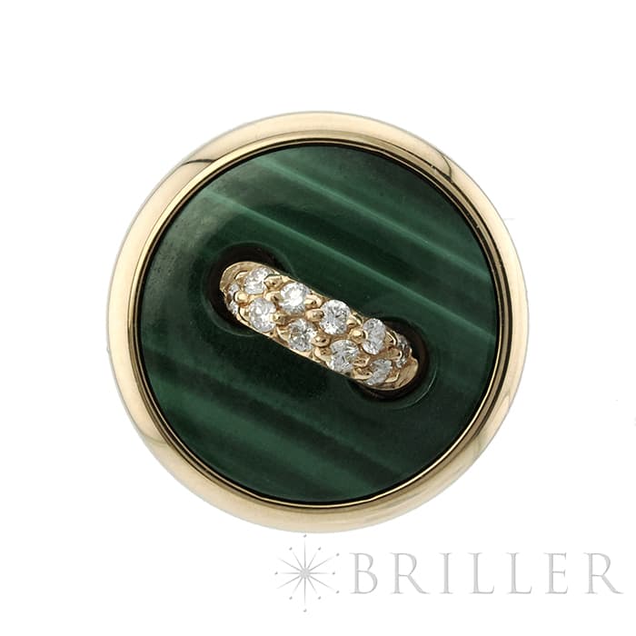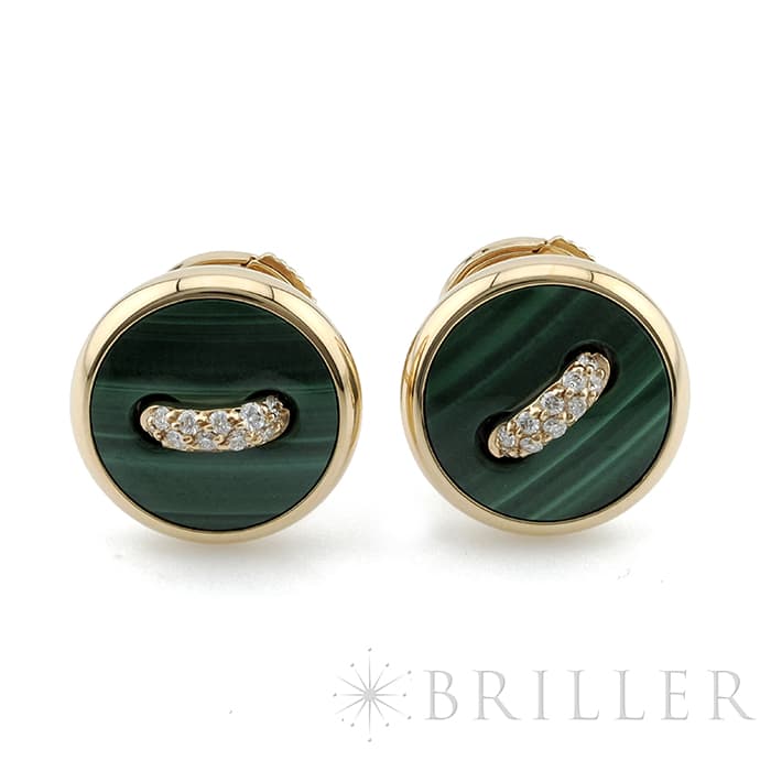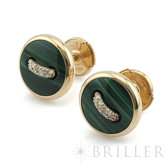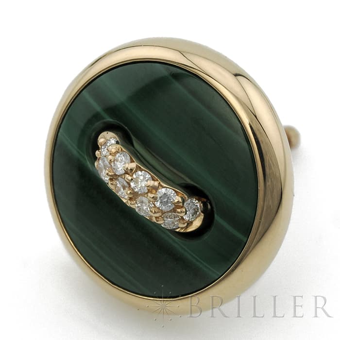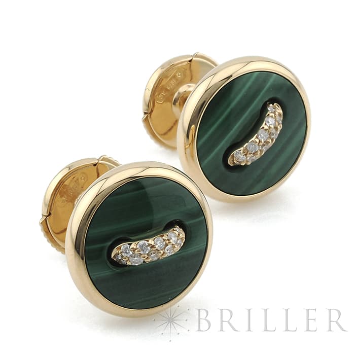 1967年にミラノで生まれたジュエリーブランド「ポメラート(POMELLATO)」。1974年に制作された「ボタン」風デザインが、新作コレクションとしてリバイバルしました。鮮やかなグリーンの縞模様が美しいマラカイトをあしらったピアスの中央にダイヤモンドをセッティング。気負わないミラノのスタイルを象徴する爽やかなデザインです。