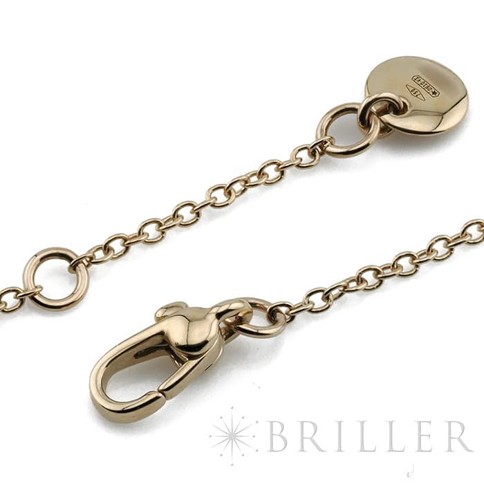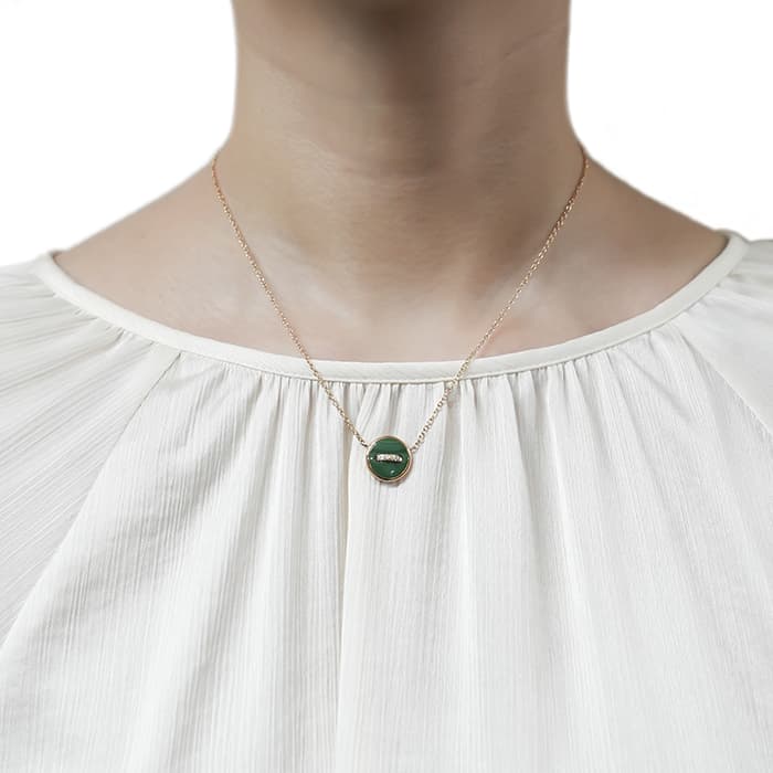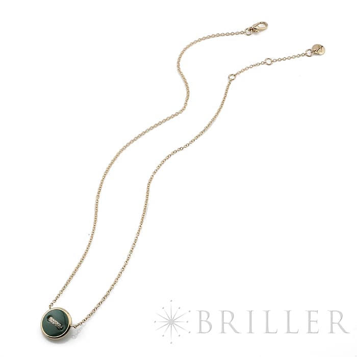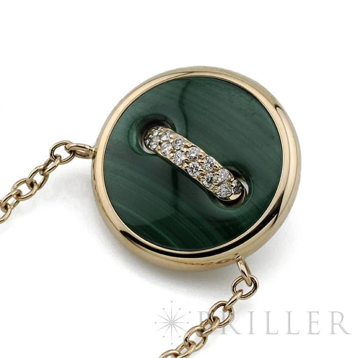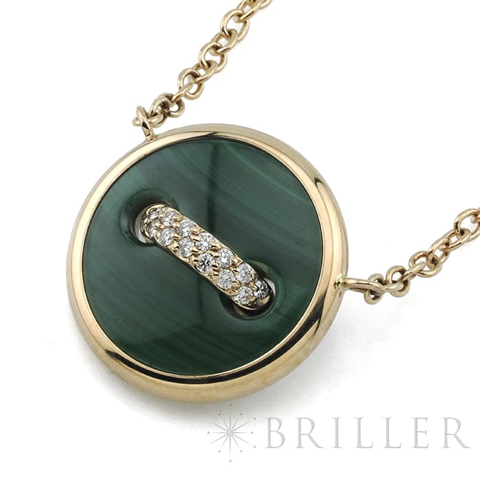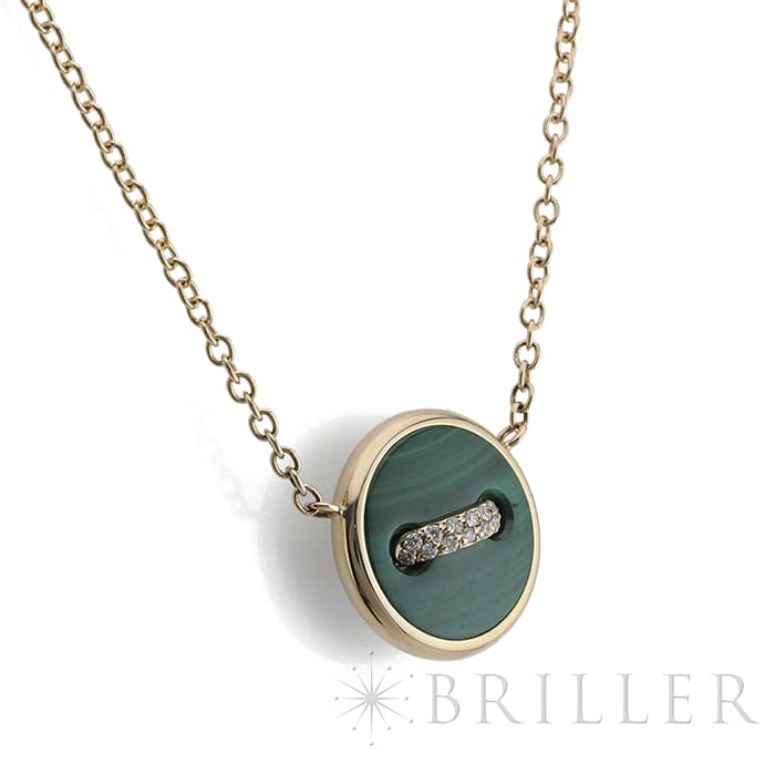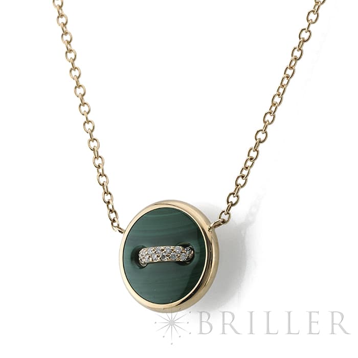 1967年にミラノで生まれたジュエリーブランド「ポメラート(POMELLATO)」。1974年に制作された「ボタン」風デザインが、新作コレクションとしてリバイバルしました。ペンダントはリバーシブル仕様になっており片側には鮮やかなグリーンの縞模様が美しいマラカイトの中央に14粒のダイヤモンドをセッティング。逆側にはホワイトマザーオブパールがあしらわれています。気負わないミラノのスタイルを象徴する爽やかなデザインです。