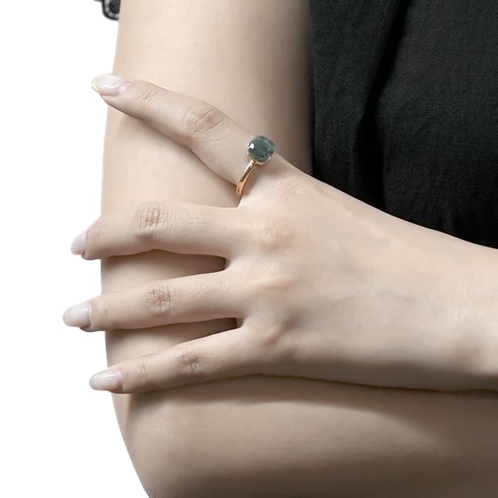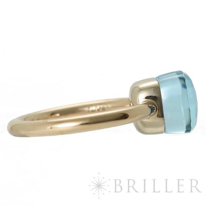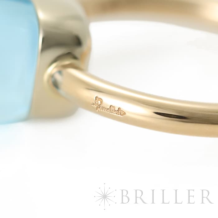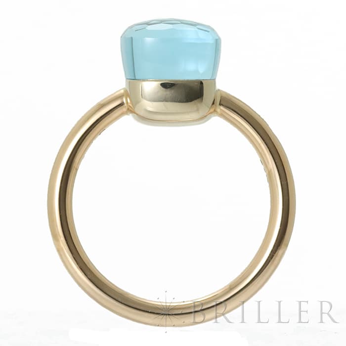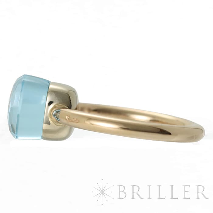 1967年にミラノで生まれたジュエリーブランド「ポメラート(POMELLATO)」。2001年に発表されポメラートのアイコン的ジュエリー「ヌード」が入荷致しました。カラフルなプレシャスストーンは特許を取得している多面のファセットカットとセッティングが施されており、大変美しいシリーズです。ぷっくりとしたストーンなため、1個で指元のアクセントとするも良し。2,3個重ね付けして存在感も出すのも良い楽しみ方の幅が広いリングです。サイズ展開はプチ、クラシック、マキシ、アッソルートと4種類あり、こちらはプチとなります為、1番小さいサイズとなります。ブルートパーズは鮮やかなブルーが特徴的で、爽やかな印象を与える人気シリーズです。