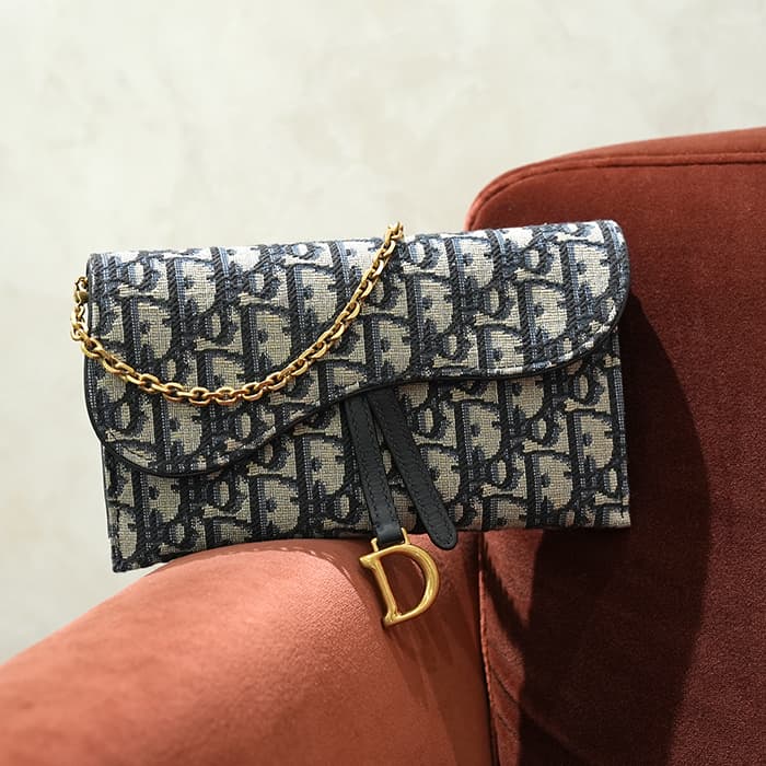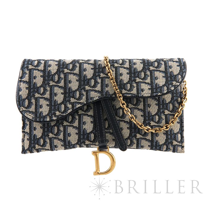 1999年にクリスチャンディオールのアーティスティックディレクターを務めていた ジョン・ガリアーノによって生まれた「サドルバッグ」。2018年コレクションで復活し人気を博しています。乗馬用のサドルからインスピレーションを得た特徴的なアシンメトリーのフラップにあぶみを象ったD型モチーフがアクセントになっています。取り外し可能なジップポーチとチェーンストラップによって様々な使い方ができるのも魅力的です。ブルーの「ディオール オブリーク」ジャカードがモダンな印象のロングウォレットです。