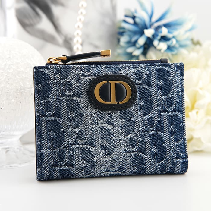 クリスチャン・ディオール 30 モンテーニュ ダリア ウォレット デニム ディオール オブリーク ジャカード S2197UDCE_M49E CHRISTIAN DIOR
