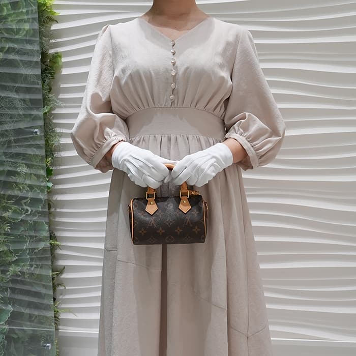 ボストンバッグをコンパクトに改良し、1930年代に発売されたエクスプレスを原型としている「スピーディ」。こちらはさらにミニチュアサイズの「ナノ・スピーディ」です。手持ちすることもできますが、付属のショルダーストラップをつけて肩掛けスタイルでお楽しみいただくこともできます。シーンに合わせて持ち方を変えることができるため、幅広いシーンで活躍してくれます。バッグの収納口は、少し狭めですがマチがしっかりあるため、お出かけの必需アイテムはしっかり収納することができます。 ミニバッグ人気の今改めておすすめのバッグです。シンプルなデザインですので、飽きることなく長年ご利用頂けます。