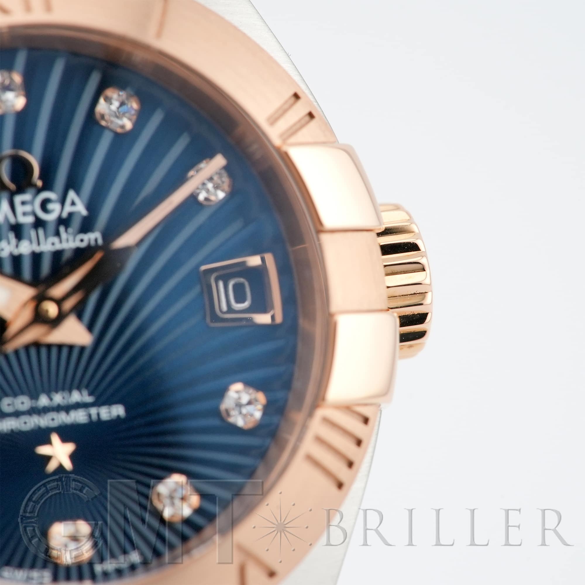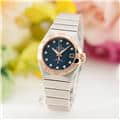 オメガ コンステレーション 27mm 123.20.27.20.53.001 OMEGA スイスの高級時計ブランドとして世界中から愛される「オメガ」。英語で星座の意味する「コンステレーション」は、オメガを代表するモデルです。3時位置と9時位置にある爪が印象的でラグジュアリーな印象を持ちながらも、オンオフ共にご着用いただきやすいデザインをしています。ブルー文字盤はオメガ独自のアラベスク模様を施した「スーパーノヴァ」と呼ばれる美しいデザインを持ちます。肌なじみの良いレッドゴールドとのコンビが映える文字盤に11個のダイヤが輝きます。OMEGA 時計の買取り・下取りも行っておりますので、お気軽にご相談ください。