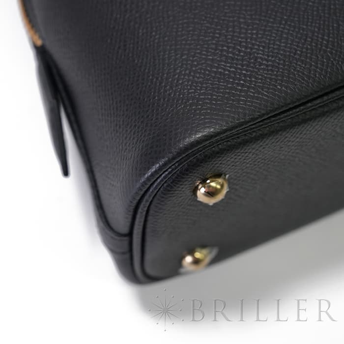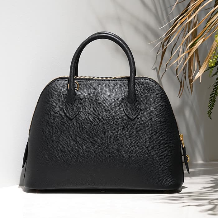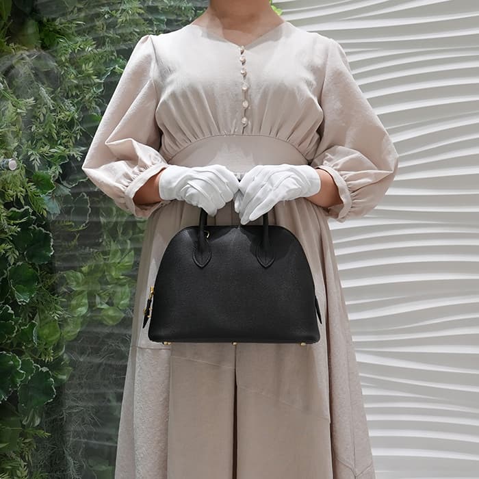 雄牛の革に細かい型押し加工を施したエプソンは、ハリがあり型崩れしにくい素材ですので、長くご愛用頂けます。ブラックとゴールド金具は華やかで高級感があり、定番色だからこその美しさを感じる組み合わせです。チャームやツイリーで幅広いアレンジを楽しんでいただくのもおすすめです。