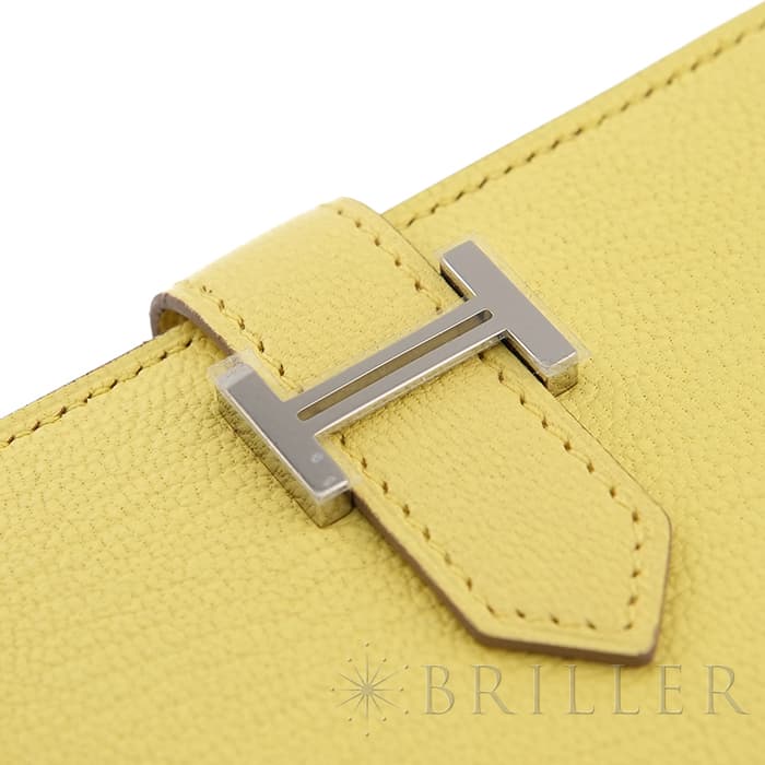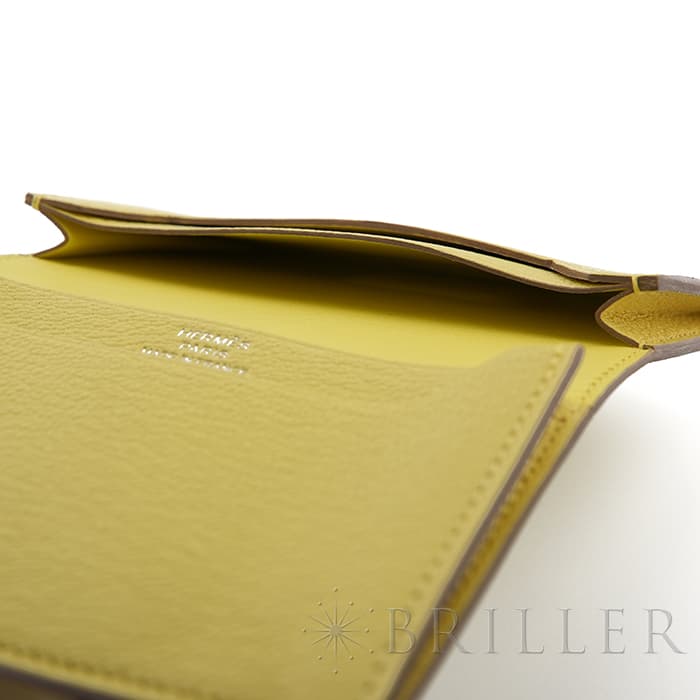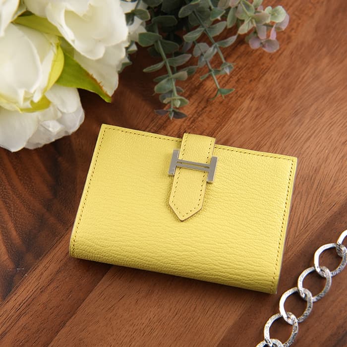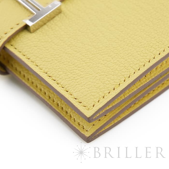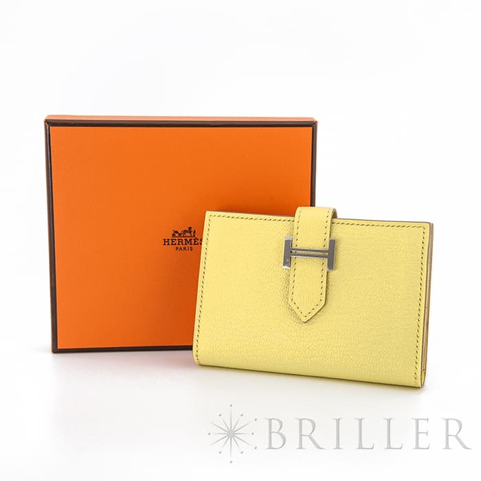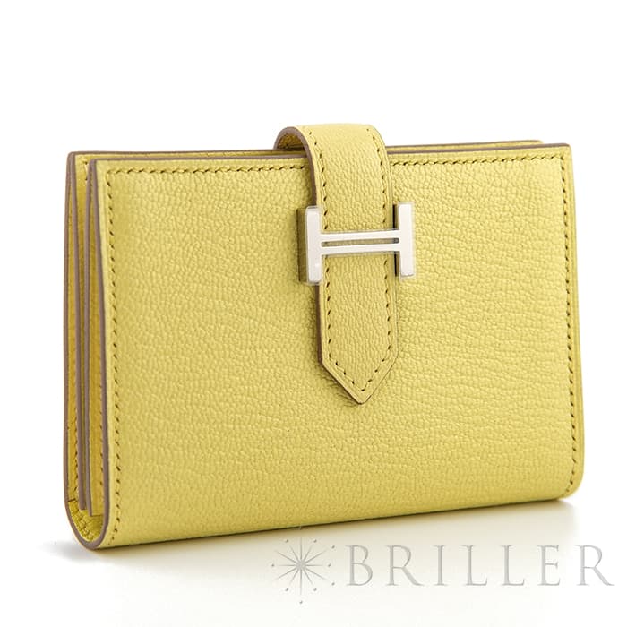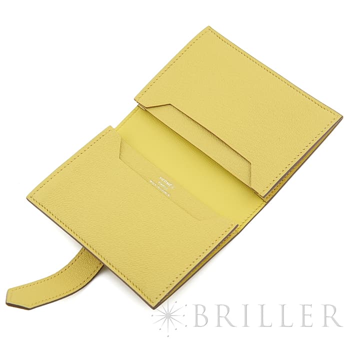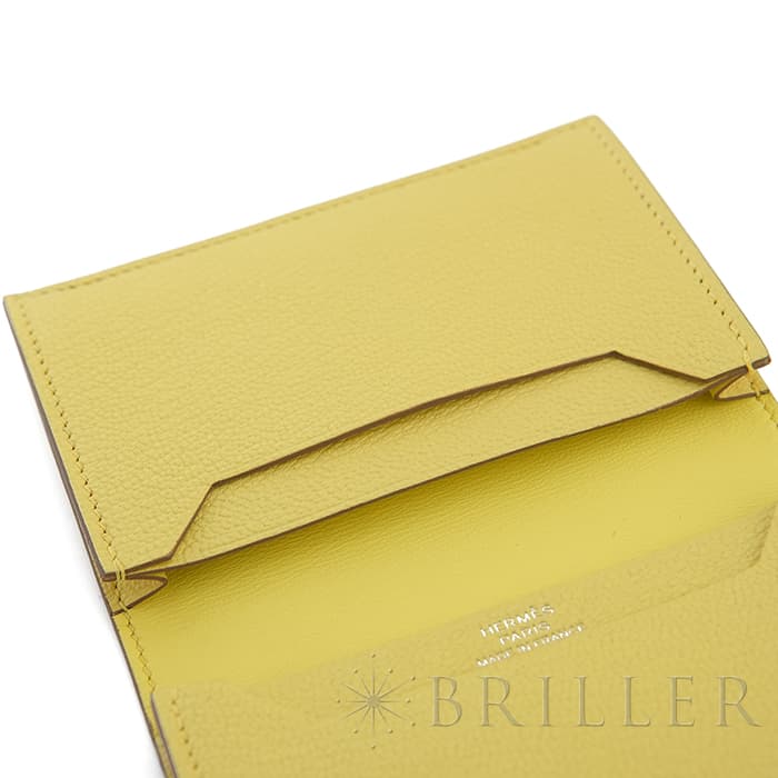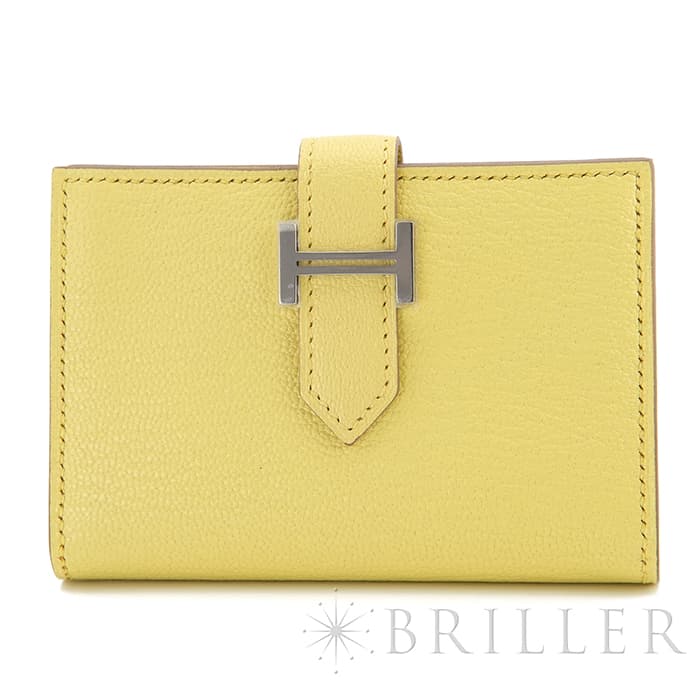 エルメス ベアン カードケース シェーブル リモンチェッロ シルバー金具 HERMES