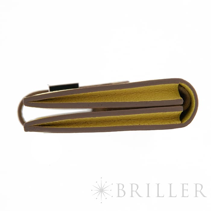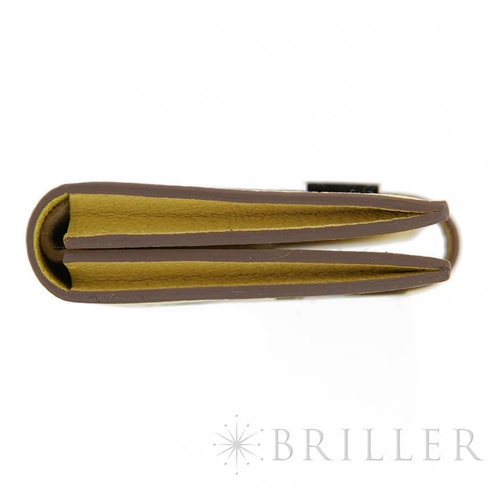 スモールレザーグッズの中でもエルメスの代名詞といえる「ベアン」シリーズ。フランス西部のベアン地方が由来です。エルメスの代表的なデザイン「Hマーク」の留め具が特徴的で、洗練されたシンプルなデザインの中に、エルメスらしい上質なラグジュアリー感を演出しています。両面にカードケースのポケットが2つずつ備わっており、手前のポケットには使用頻度の高いクレジットカードなどを収納し、マチが広い奥のポケットにそれ以外のカードをまとめて収納できるようになっています。素材は光沢の美しい希少なシェーブルを使用。南イタリアのレモンリキュールから取られたリモンチェッロは柔らかいイエローで気分を明るくしてくれます。