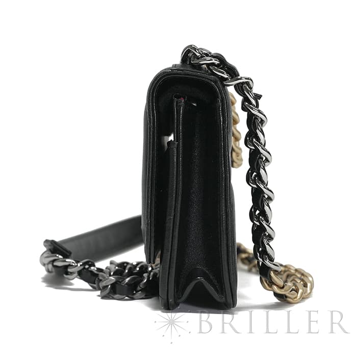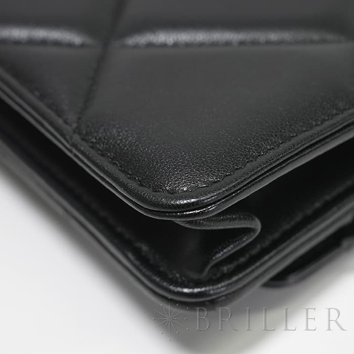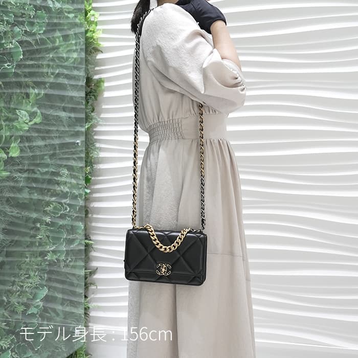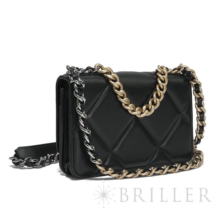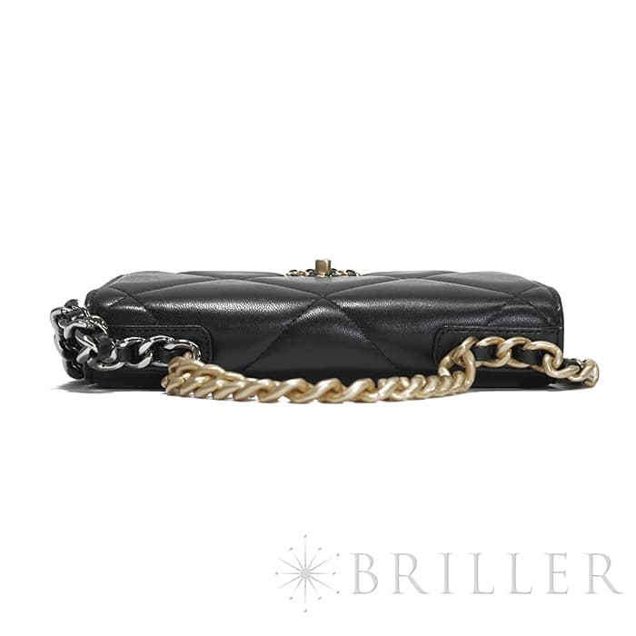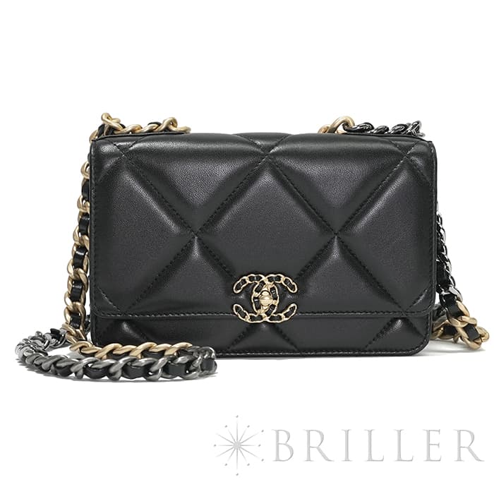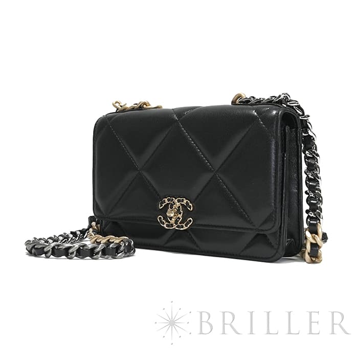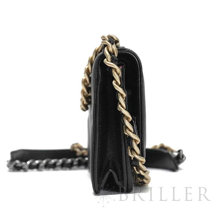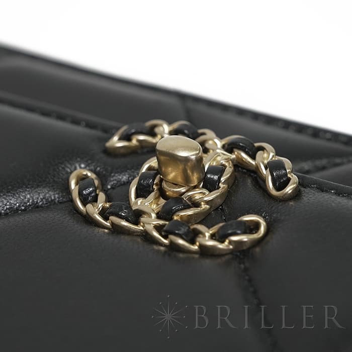シャネル 19 チェーンウォレット シャイニーラムスキン ブラック ゴールド金具 CHANEL