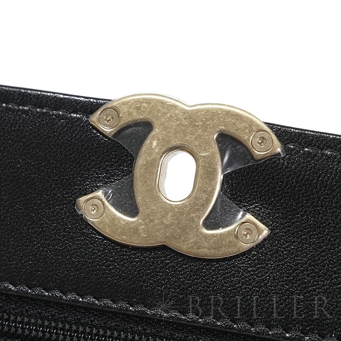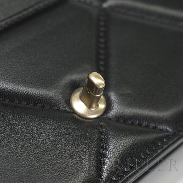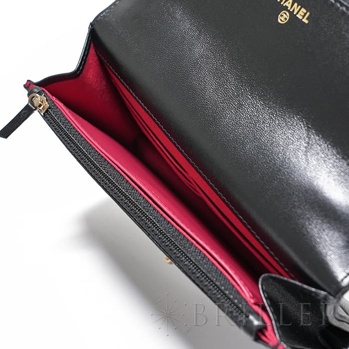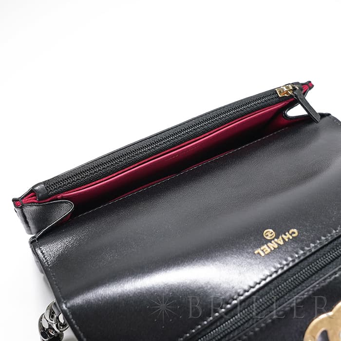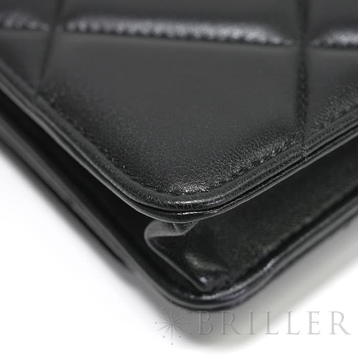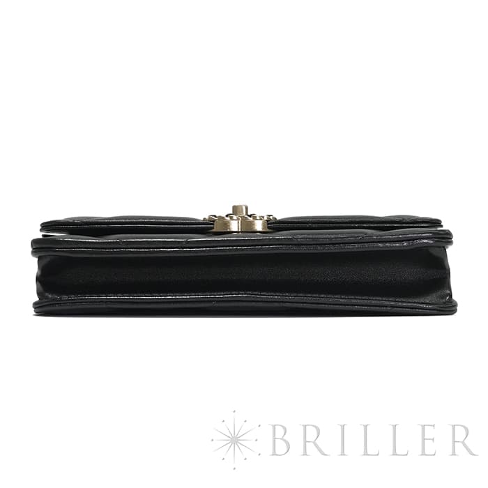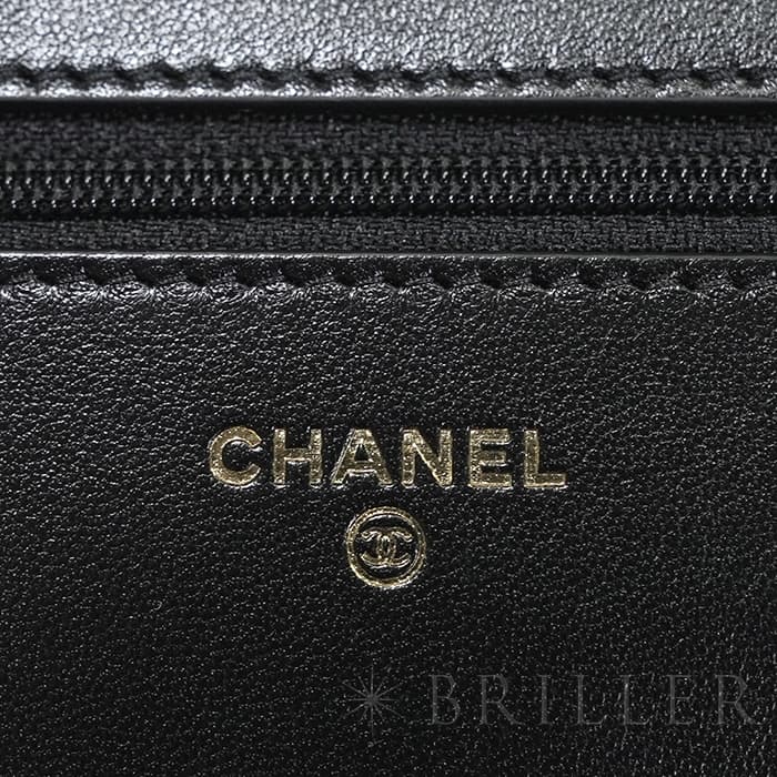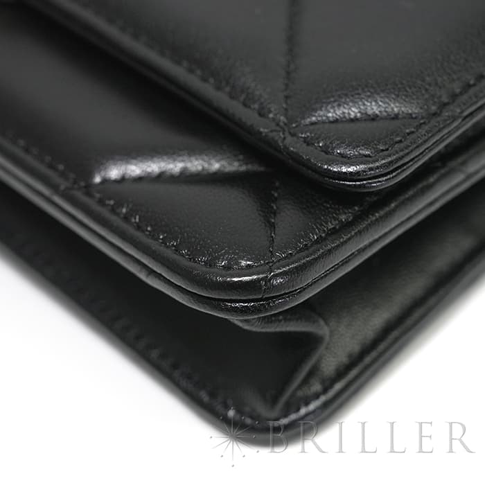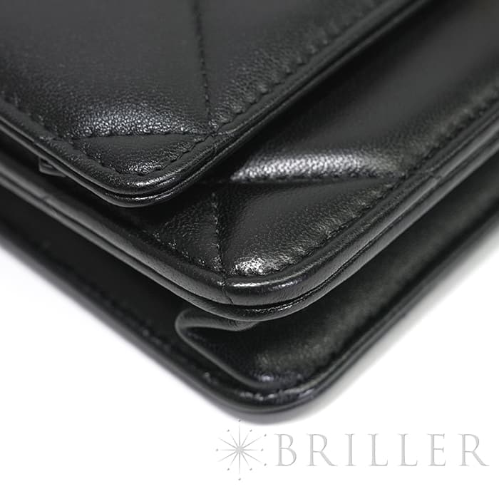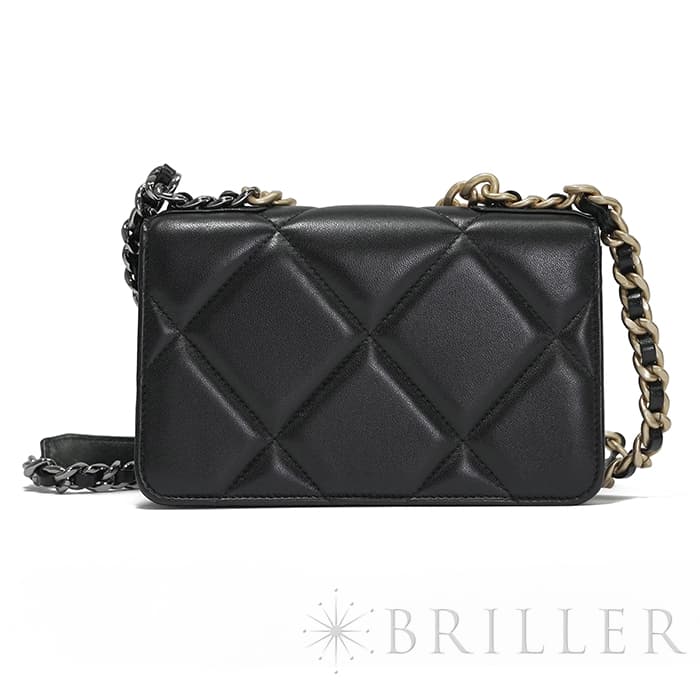 シャネル 19 チェーンウォレット シャイニーラムスキン ブラック ゴールド金具 CHANEL