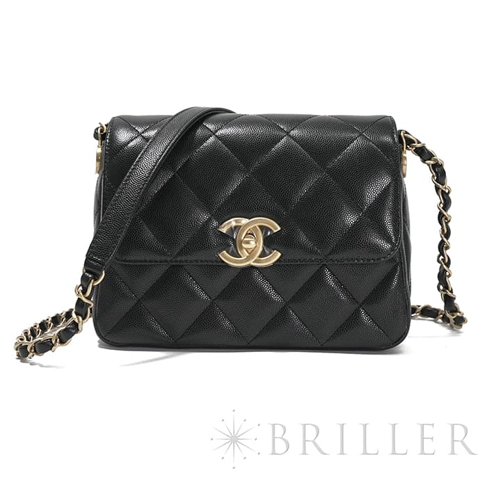 シャネルの中でも人気の高いブラックが入荷いたしました。フラップ部分のシャネルのゴールドロゴが印象的なミニフラップ バッグです。ふっくらとしたキルティングが特徴の「マトラッセ」は、シャネルを代表するバッグのひとつです。素材には傷や汚れに強いキャビアスキンを使用。型崩れしにくくなる効果があるキルティング加工を施すことで、リッチな質感だけでなく、デイリーユースしやすい実用性をも実現しています。2枚の生地を縫い合わせたキルティングによって美しい模様が浮かび上がり、ふっくらとした印象で女性らしさを感じられます。多様なシーンでエレガントでキュートなコーディネートを楽しめる、一つは欲しい万能バッグです。