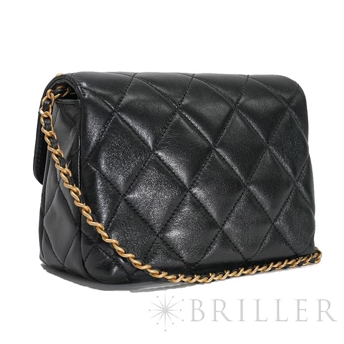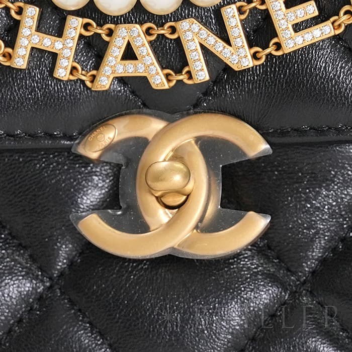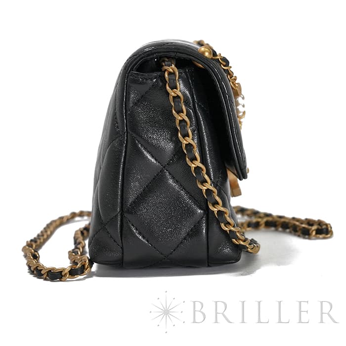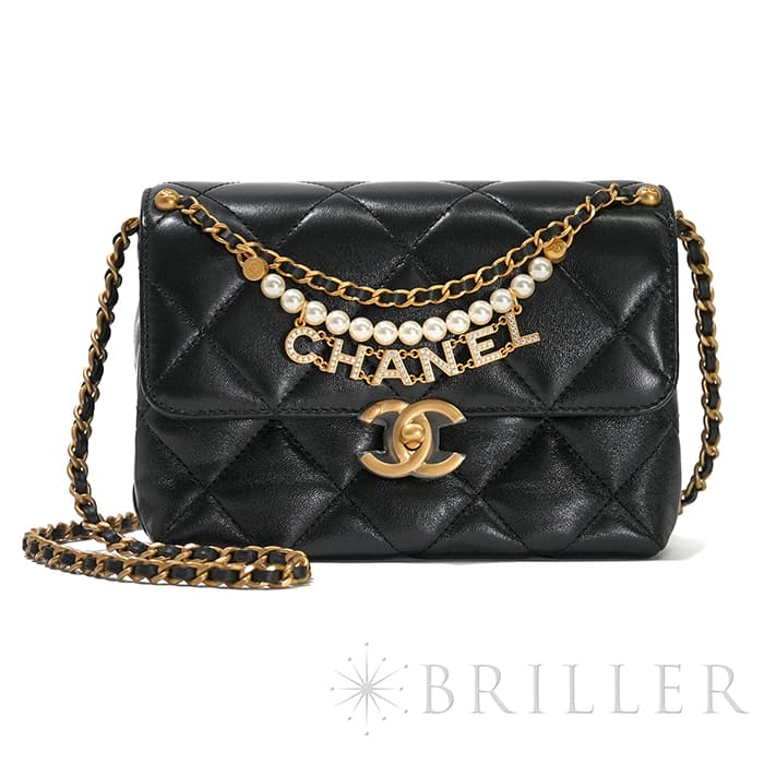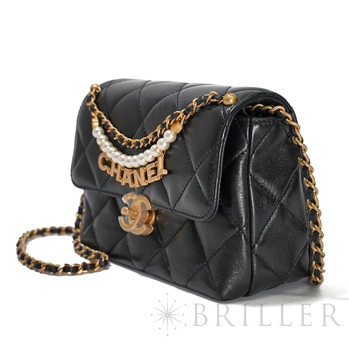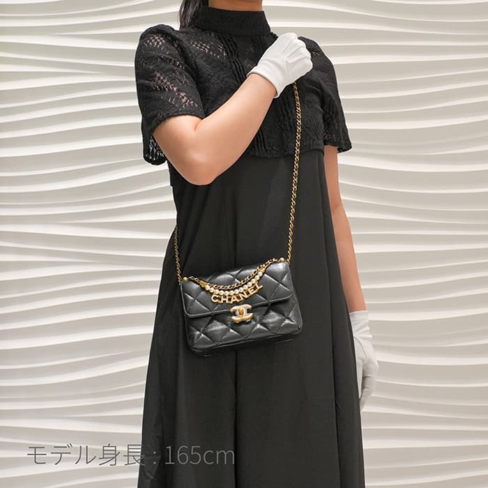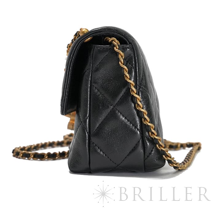 シャネル ミニ フラップ バッグ シャイニー ラムスキン&コスチュームパール ブラック ゴールド金具 AS4986 B17360 94305 CHANEL