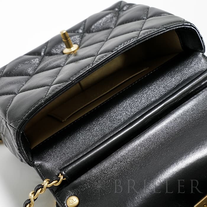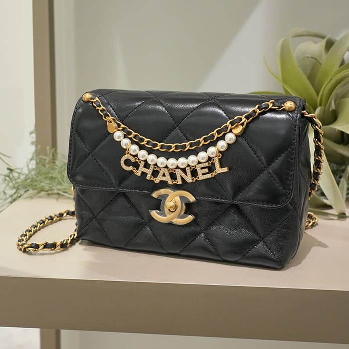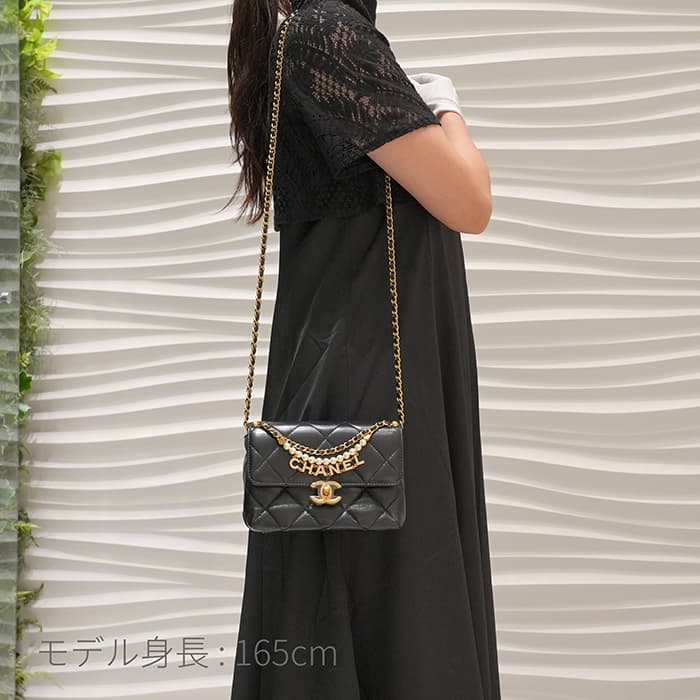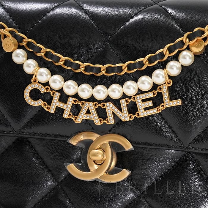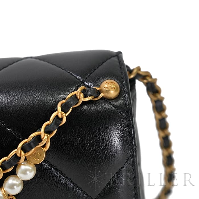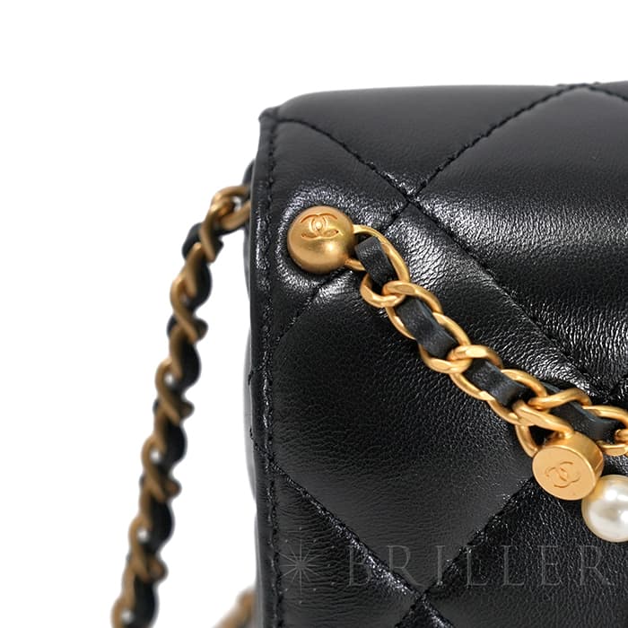 CHANEL シャネル ミニ フラップ バッグ シャイニー ラムスキン&コスチュームパール ブラック ゴールド金具 AS4986 B17360 94305