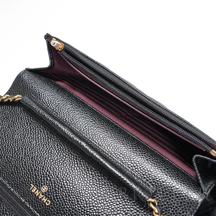 CHANEL シャネル マトラッセ チェーンウォレット キャビアスキン ブラック ゴールド金具