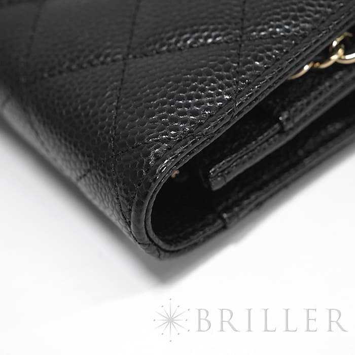 シャネル マトラッセ チェーンウォレット キャビアスキン ブラック ゴールド金具