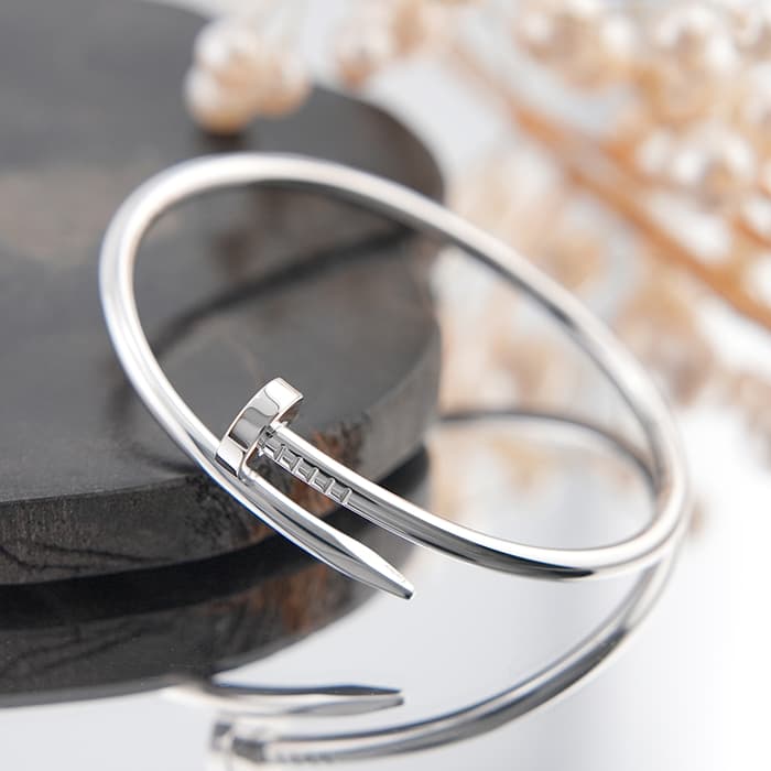 フランスで誕生し、独創的なデザインや技術力の高さから圧倒的な支持を受けるブランド「カルティエ」。1本の釘から誕生したジュエリー「ジュスト アンクル」のブレスレットは、個性的かつ上品なデザインが人気のジュエリーです。大胆かつモダンな雰囲気で、洗練された美しさを放ちます。男女問わず使いやすいデザインで、同じシリーズのネックレスやリングと組み合わせたり、ペアでお揃いをつけて楽しめます。