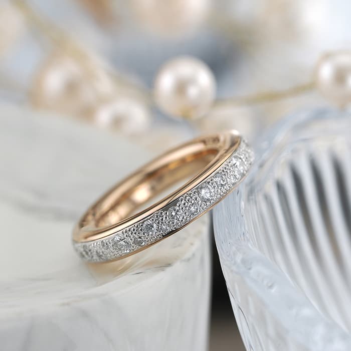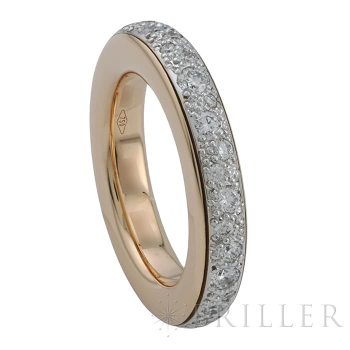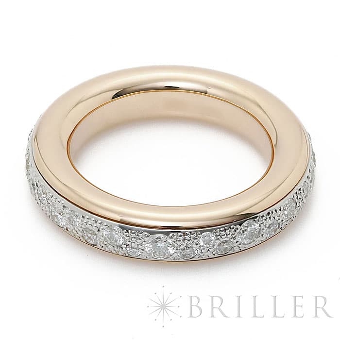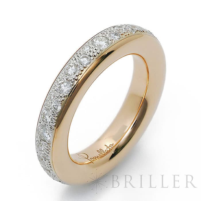 1967年にミラノで生まれたジュエリーブランド「ポメラート(POMELLATO)」。ポメラート創立50周年を機に新たに加わった「イコニカ」は、ボリューム感のある大きさながら美しい曲線美を描き上品な雰囲気を演出するシリーズです。 こちらのリングはイコニカらしい美しい曲線美のデザインにダイヤモンドのパヴェをあしらった、ラグジュアリーなローズゴールドのリングです。
