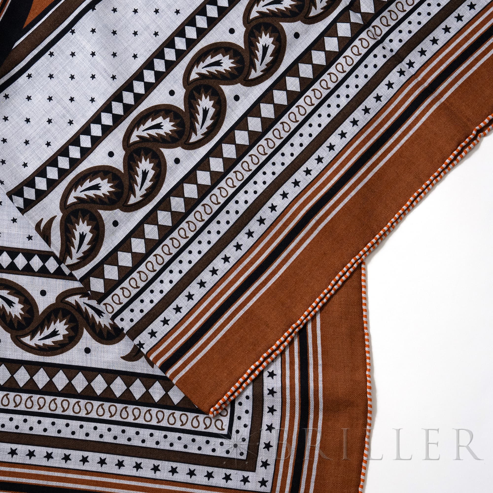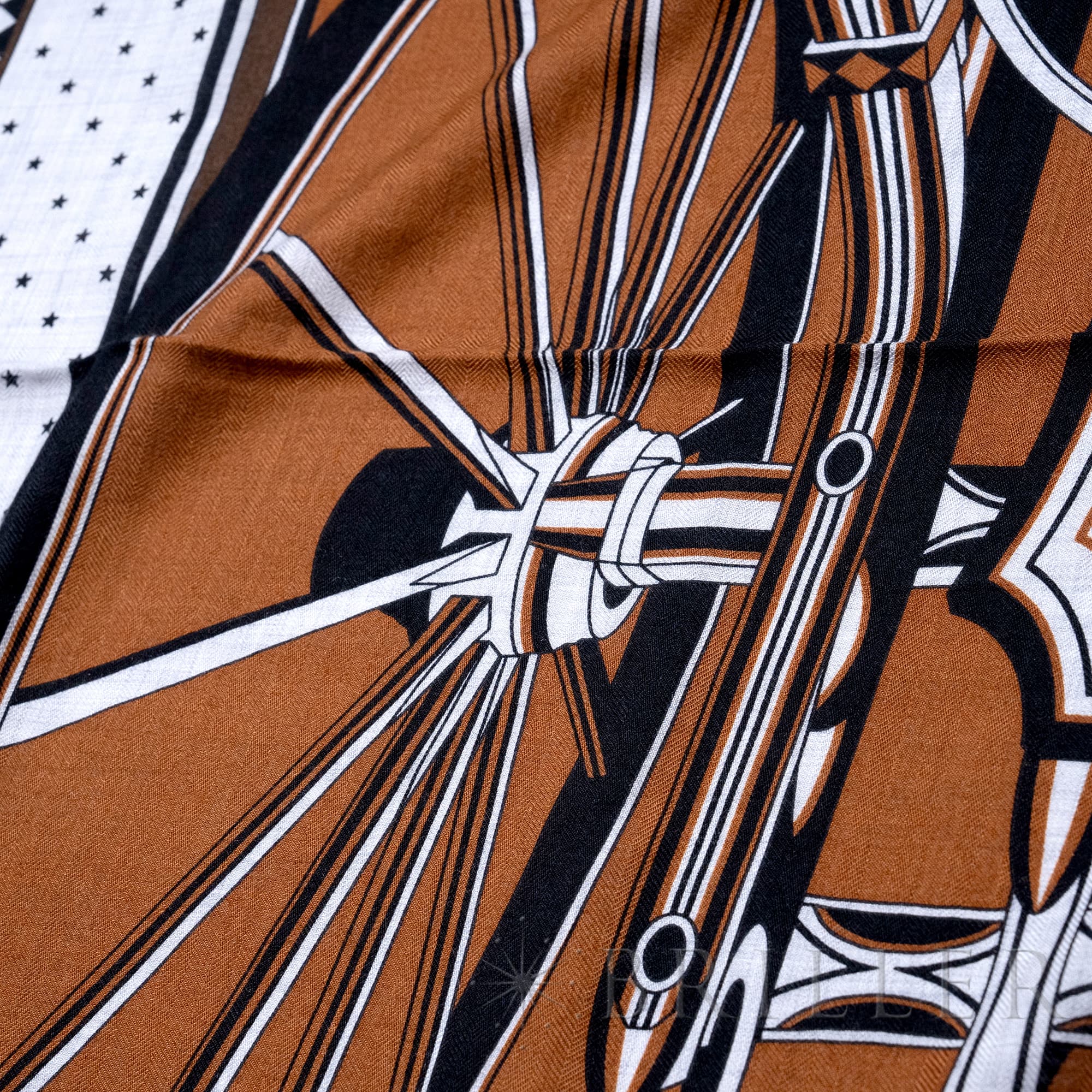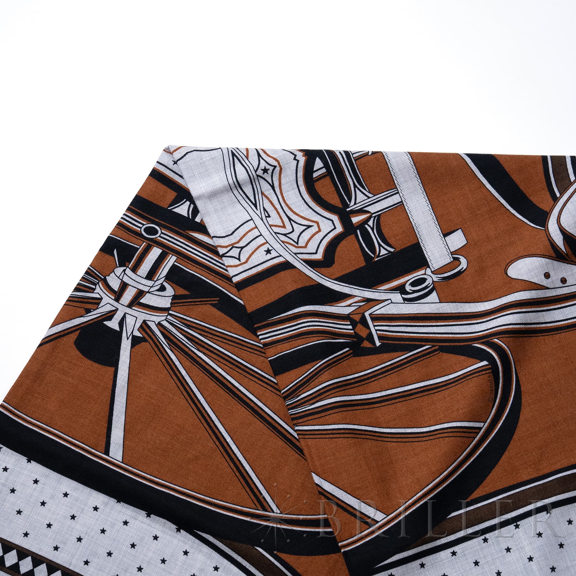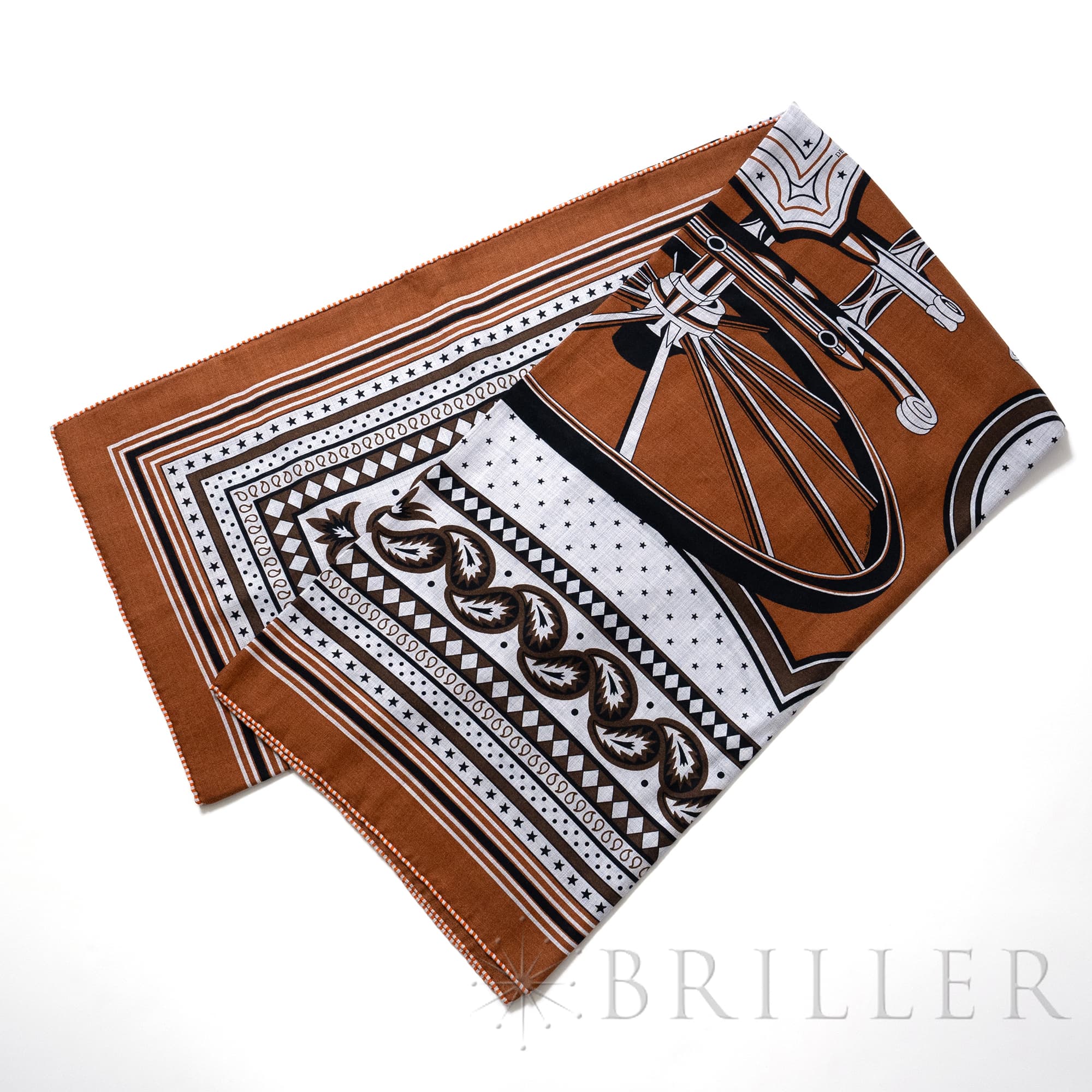 エルメス カレジェアン140 四輪馬車の車輪・バンダナ キャラメル / グリ・シネ / 黒 Hermès エルメスの大判スカーフ「カレジュアン」。カレジュアンは、軽やかで柔らかい手触りと多彩なアレンジにより色々な使い方ができ、一枚巻くだけでさまざまなコーディネイトを美しく引き立てます。手作業で縁かがりを施しているため、サイズには個体差が生じます。 こちらは2024秋冬コレクションで登場したエルメスらしいクラシックな印象を持つ「四輪馬車の車輪・バンダナ」です。フェートンはギリシャ神話の太陽神の息子で、18世紀末のフランスとイギリスで黄金時代を迎えた馬車の名称です。画家であるピエール・マリー氏によってエミール・エルメス・コレクションが所蔵するフェートンの背面図がデザインされています。