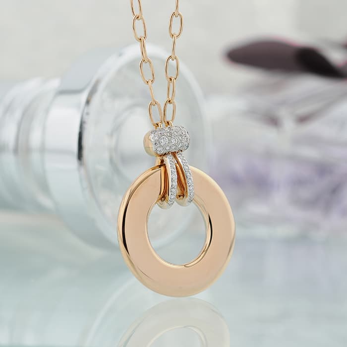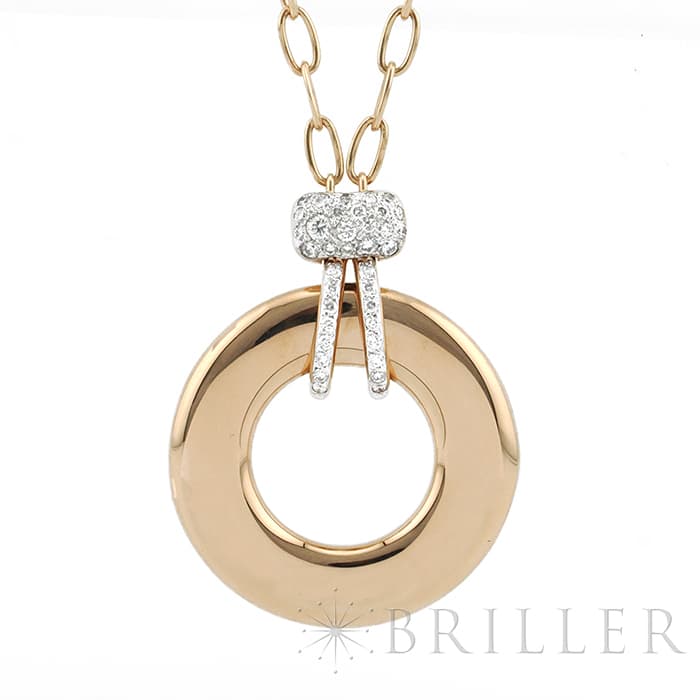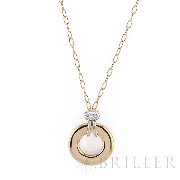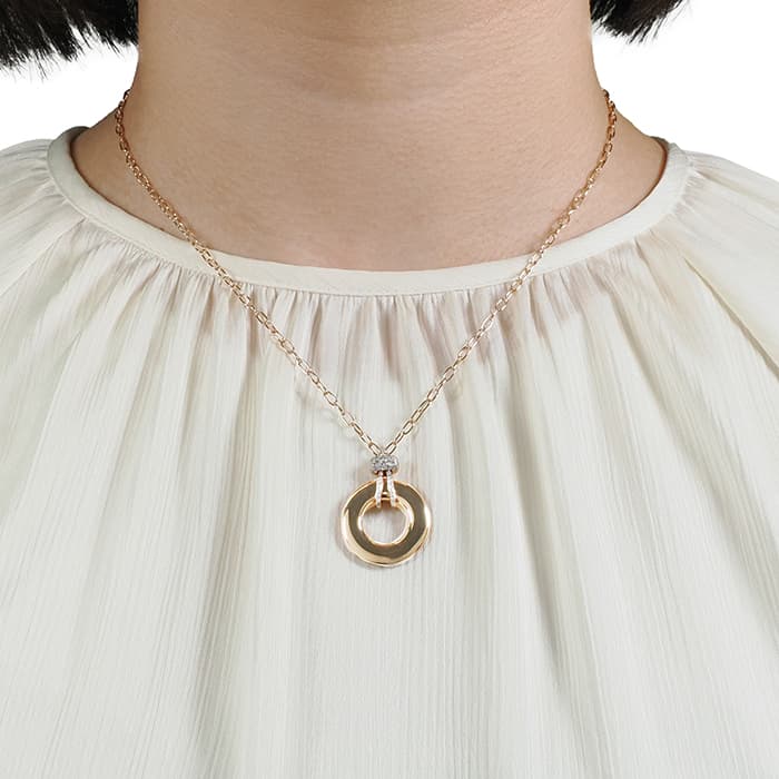 1967年にミラノで生まれたジュエリーブランド「ポメラート(POMELLATO)」。 ポメラート創立50周年を機に新たに加わった「イコニカ」。 美しい曲線美を描き上品な雰囲気を演出するシリーズです。リバーシブルペンダントになっており、表側からは0.2カラットのダイヤモンドの優雅さと、ローズゴールドの純粋さを一つのジュエリーで楽しめます。