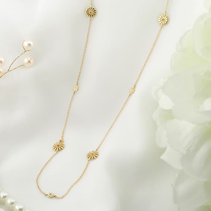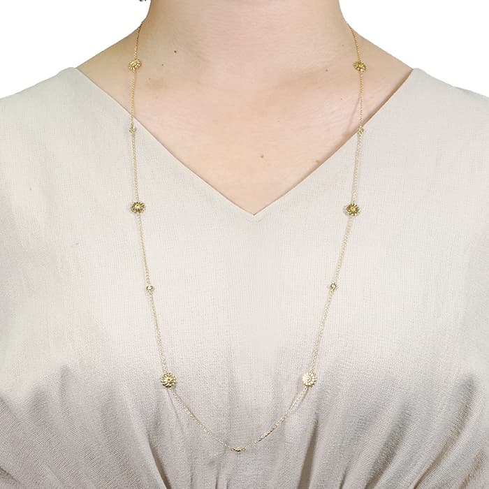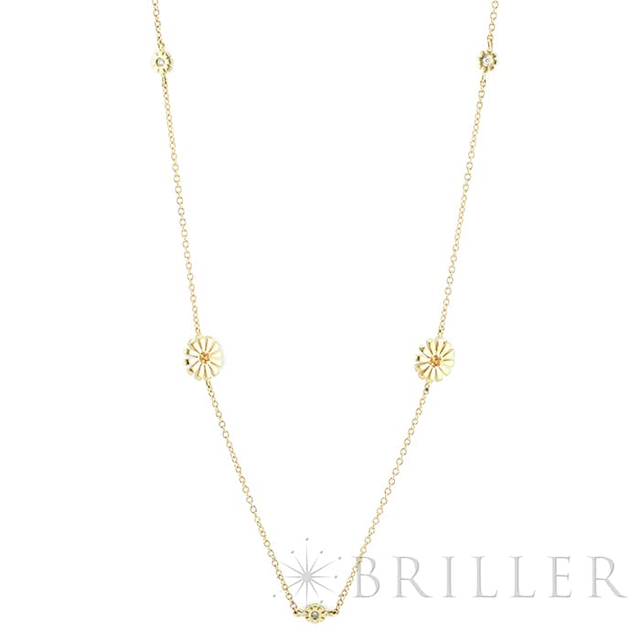 ダミアーニの人気コレクションマルゲリータのネックレスです。 「マーガレットの花」を意味するマルゲリータ。二十世紀の初めにエンリーコ・グラッシ・ダミアーニがマルゲリータ女王に捧げた指輪から着想を得たコレクション。 イエローゴールドのマーガレットの花が優雅に輝き、繊細でロマンチックな女性の美しさを際立たせます。 上品でロマンティックな雰囲気で、首元を華やかに演出します。