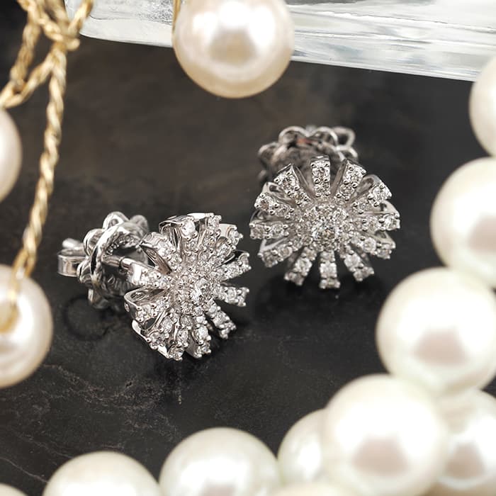 ダミアーニの人気コレクションマルゲリータのピアスです。 「マーガレットの花」を意味するマルゲリータ。二十世紀の初めにエンリーコ・グラッシ・ダミアーニがマルゲリータ女王に捧げた指輪から着想を得たコレクション。 マーガレットの花が、ダイヤモンドの光で優雅に輝き、繊細でロマンチックな女性の美しさを際立たせます。 上品でロマンティックな雰囲気で、耳元を華やかに演出します。