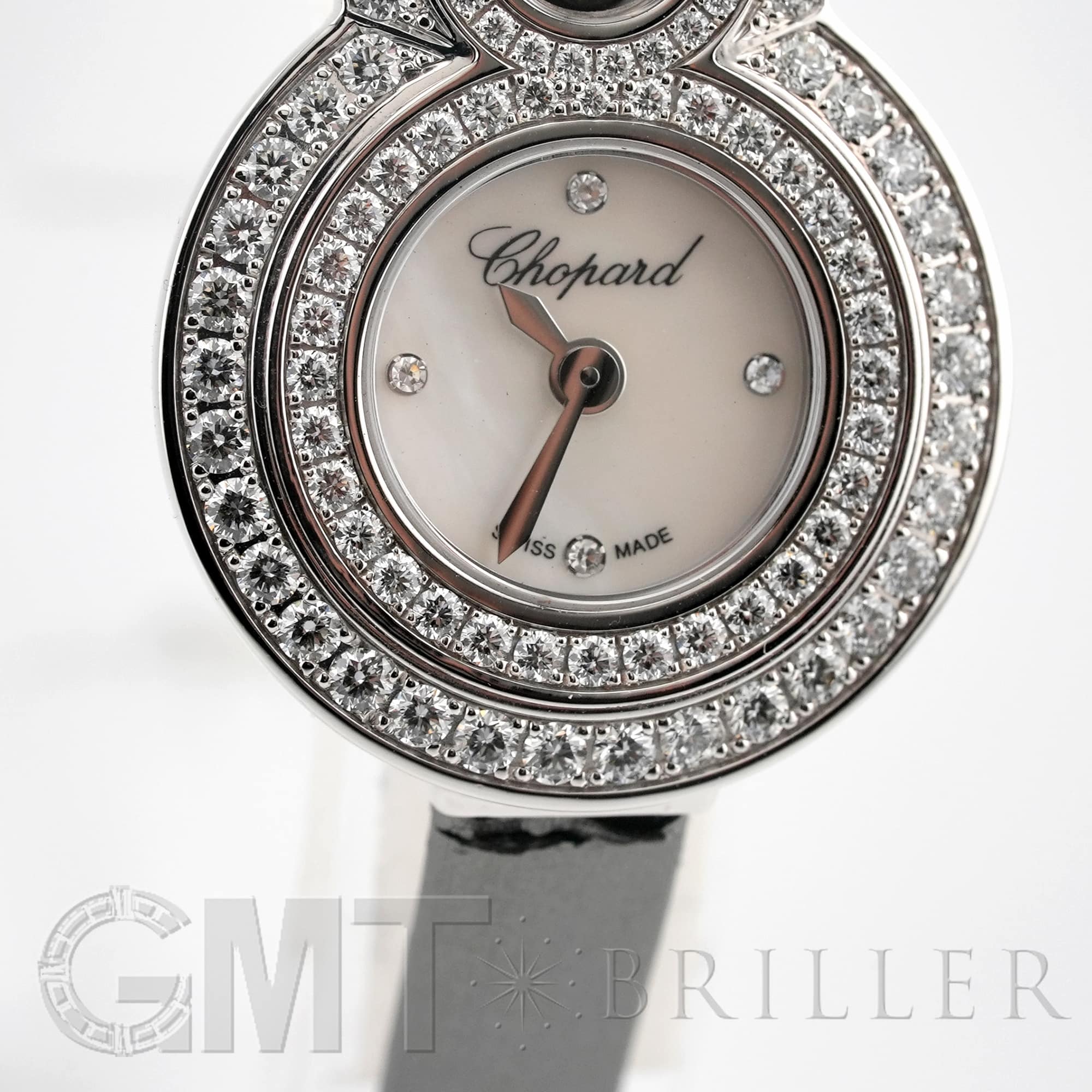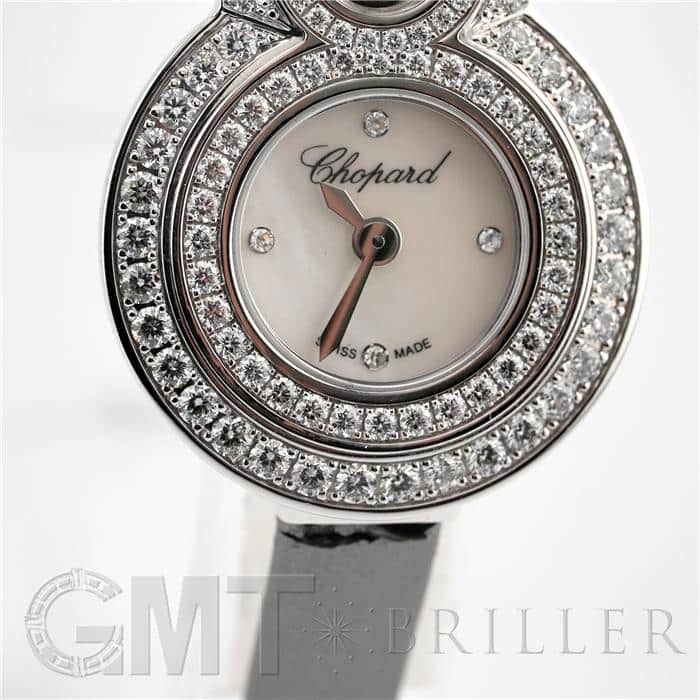 ショパール ハッピーエイト 204412-1002 2重ダイヤベゼル CHOPARD ルイ・ユリス・ショパールが設立した時計工房から始まった名門「ショパール」。なんといっても美しいデザインを多く持つブランドです。 ハッピーエイトとはケースが数字の「8」にデザインされた個性を感じつつも可愛らしいモデルです。デザイン性の高いケースでありながらも気品漂う美しい腕時計に仕上がっています。 【アウトレット】 ストラップに若干傷みがあるためアウトレット価格となっております。 ショパール 時計の買取り・下取りも行っておりますので、お気軽にご相談ください。