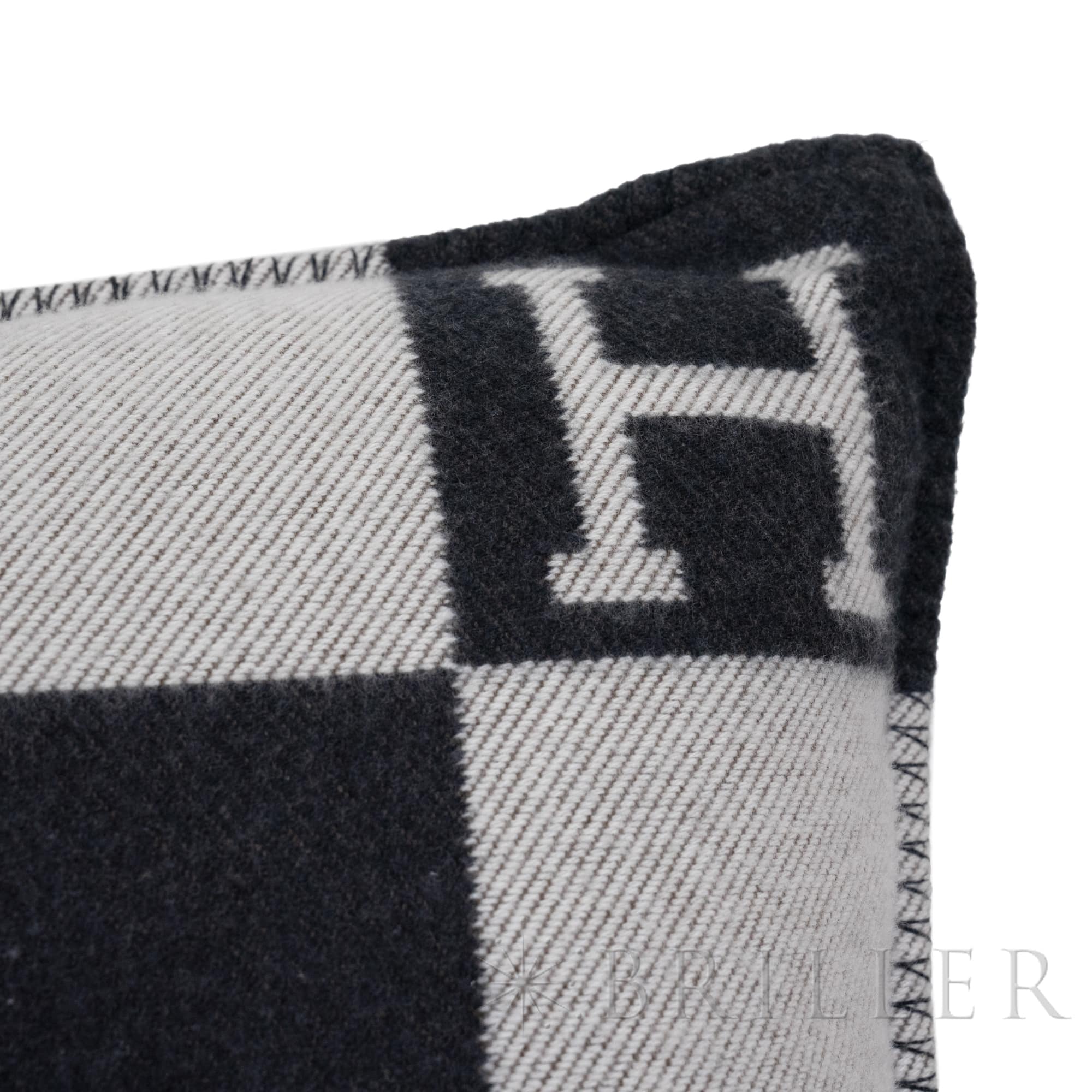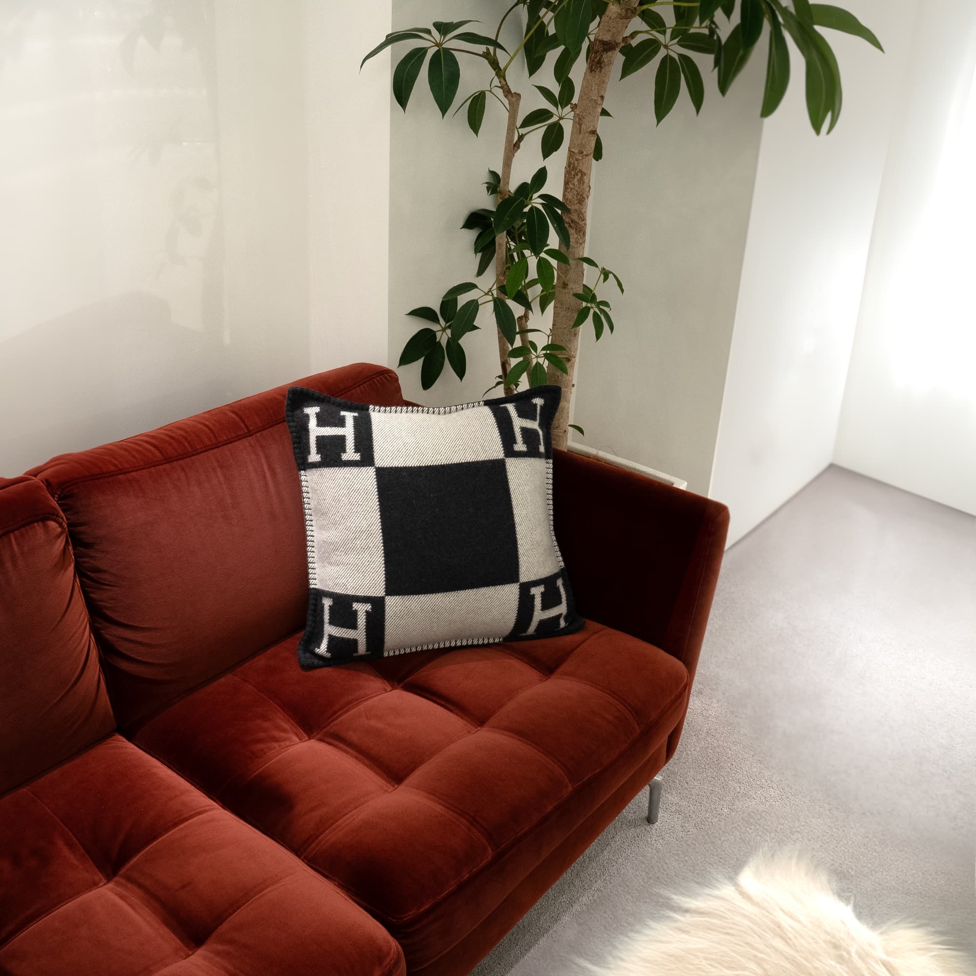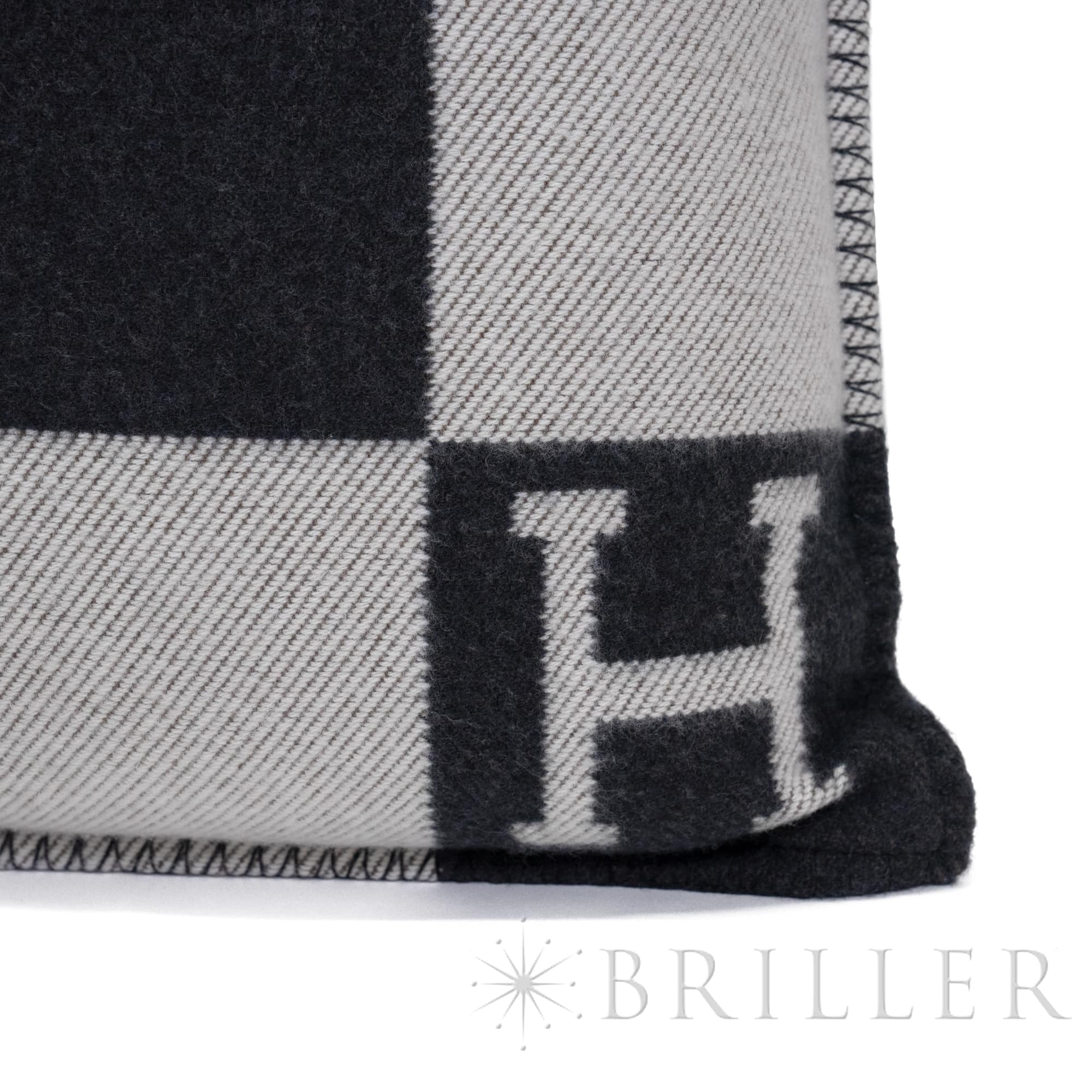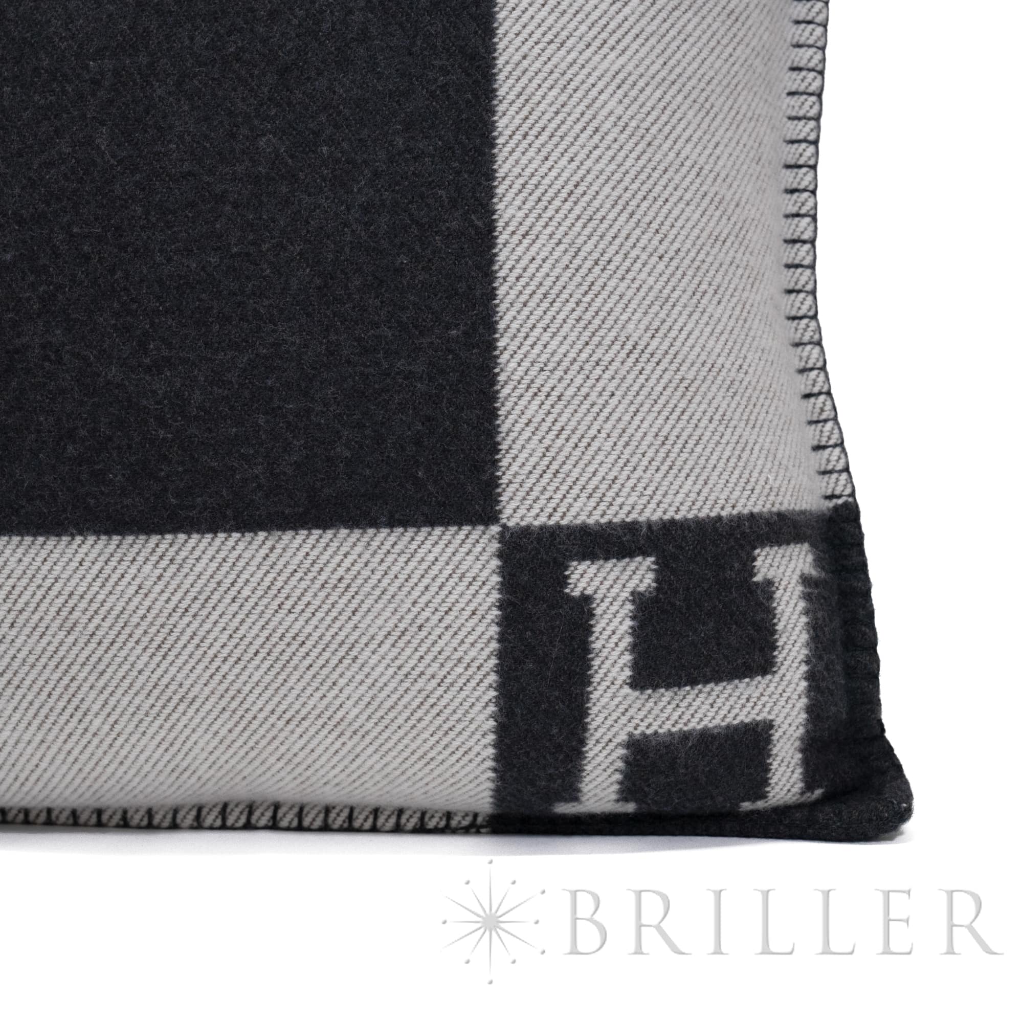 エルメス 《アヴァロン》 クッション エクリュ / グリ・フォンセ PM H102667M 53 Hermès 隅を彩るH文字が特徴的な《アヴァロン》。 熟練の職人技と精密な機械技術が融合したエルメスの代表作です。 ブランドを象徴する「H」が四隅にあしらわれ、上質なメリノウール/カシミヤの手触りが極上のひとときを演出します。 カラーバリエーションも豊富で色違いで揃えたくなる、プレゼントにもおすすめのクッションです。 メリノウール/カシミヤのジャカード織カバーは取り外し可能です。