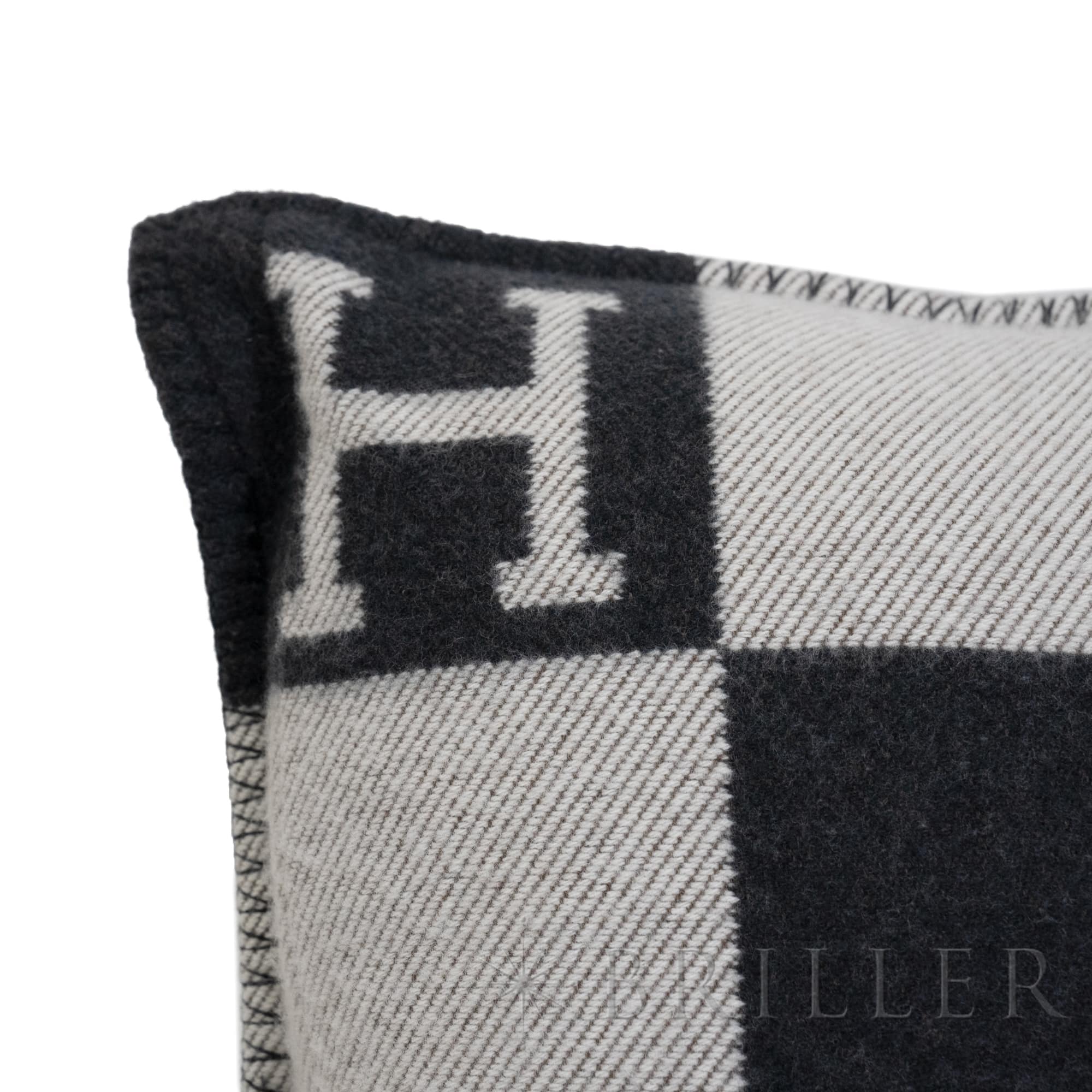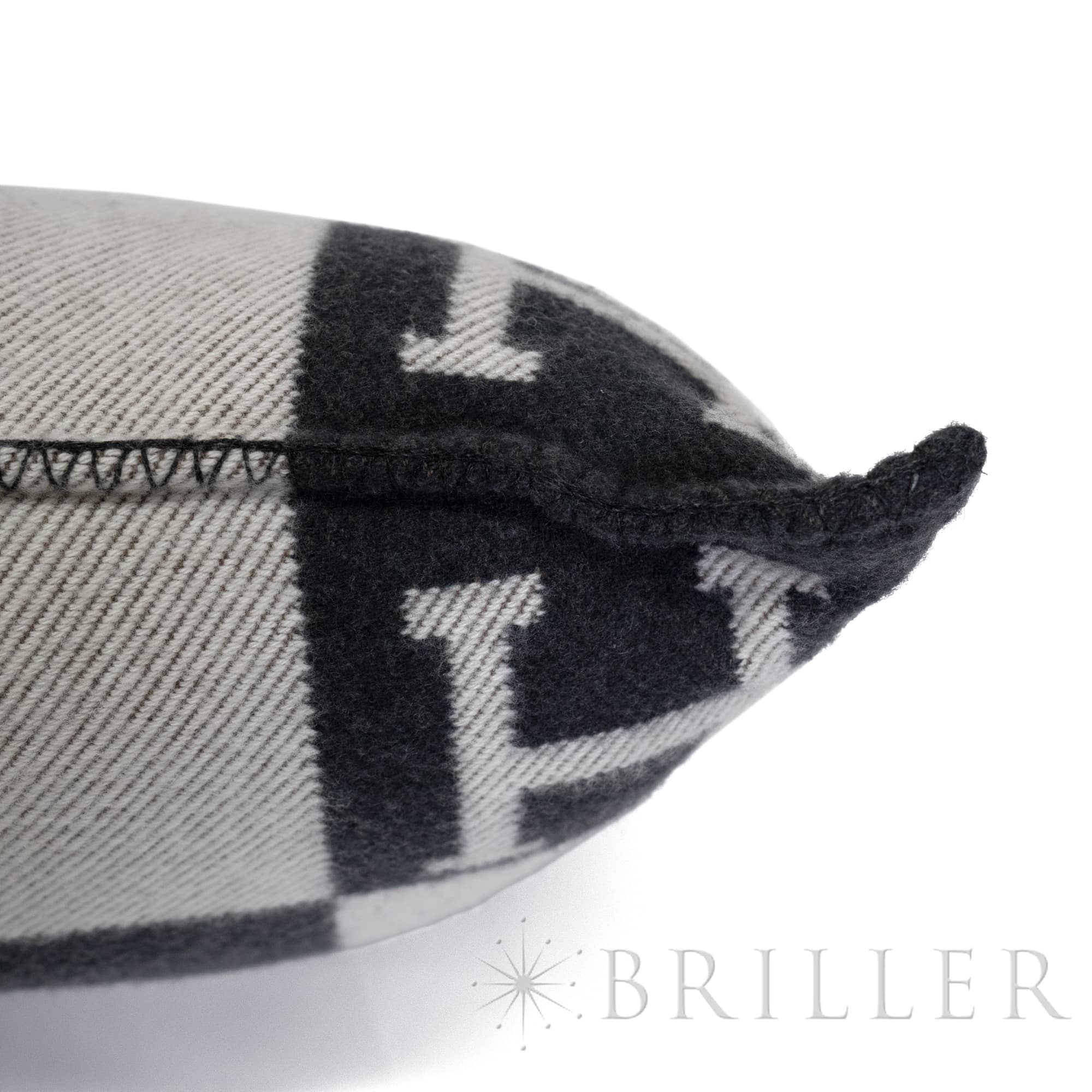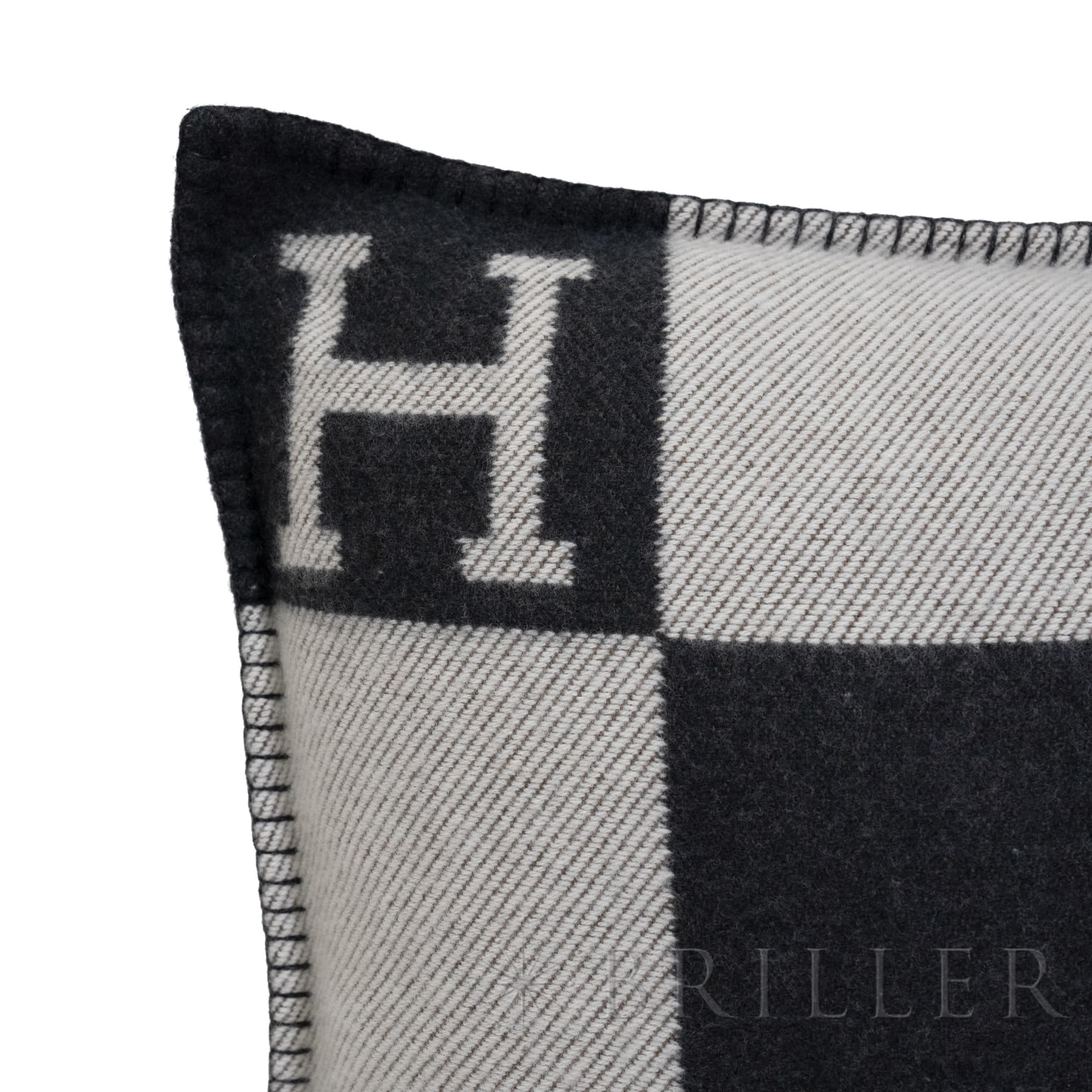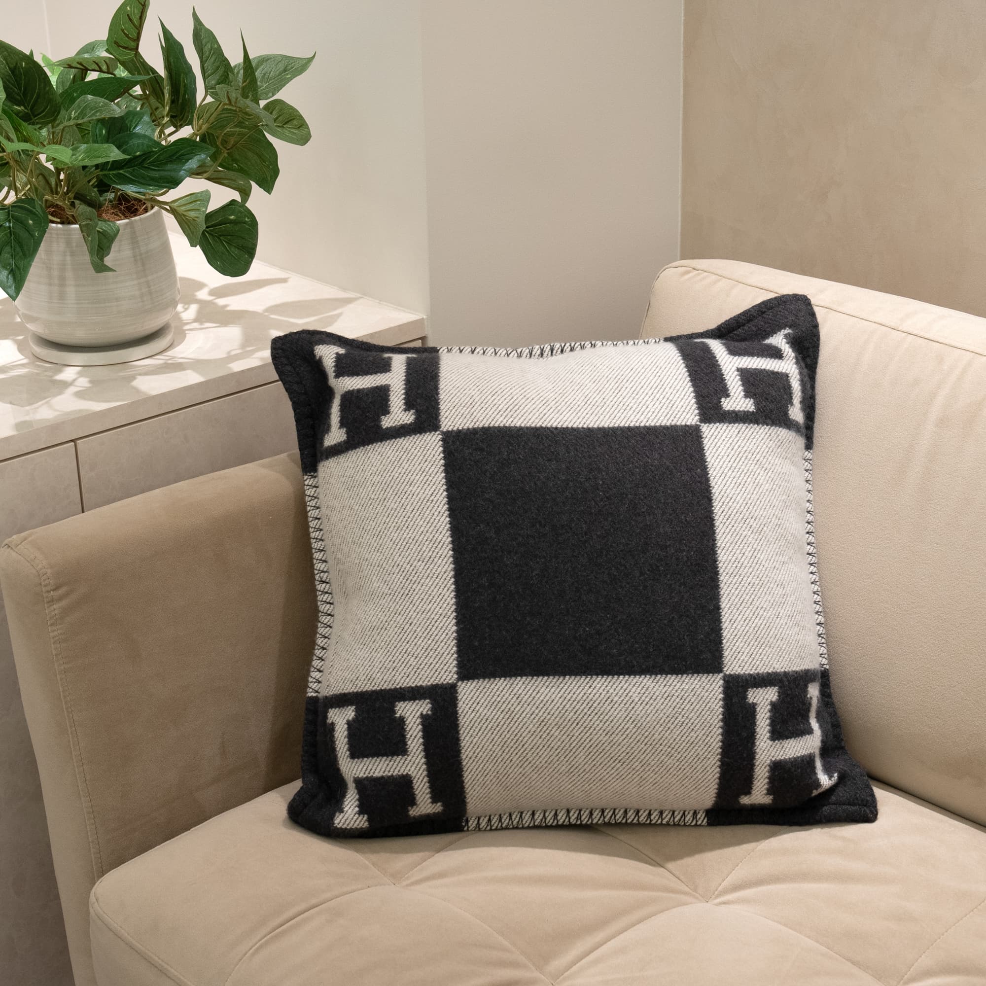 エルメス 《アヴァロン》 クッション エクリュ / グリ・フォンセ PM H102667M 53 Hermès 隅を彩るH文字が特徴的な《アヴァロン》。 熟練の職人技と精密な機械技術が融合したエルメスの代表作です。 ブランドを象徴する「H」が四隅にあしらわれ、上質なメリノウール/カシミヤの手触りが極上のひとときを演出します。 カラーバリエーションも豊富で色違いで揃えたくなる、プレゼントにもおすすめのクッションです。 メリノウール/カシミヤのジャカード織カバーは取り外し可能です。