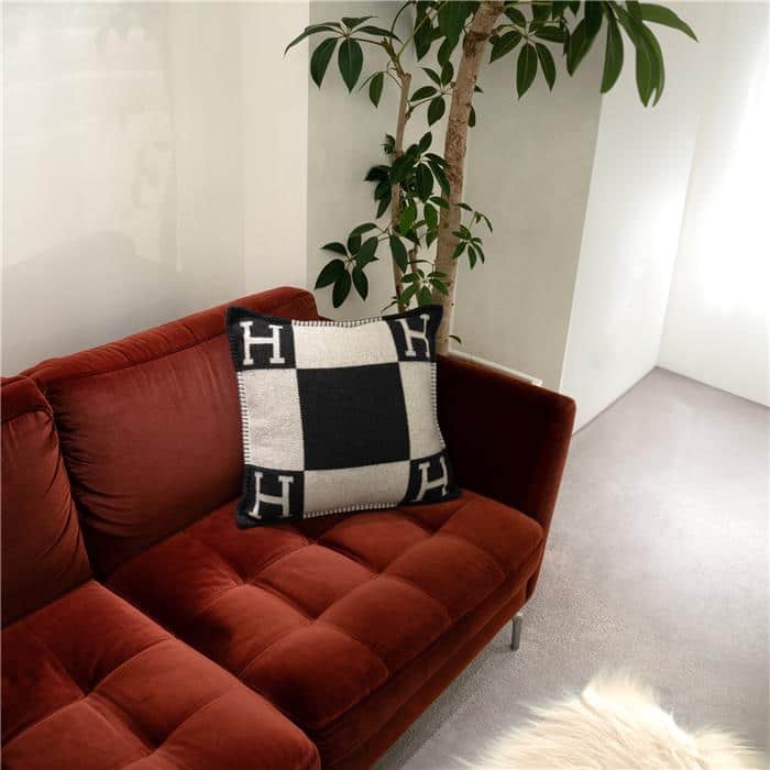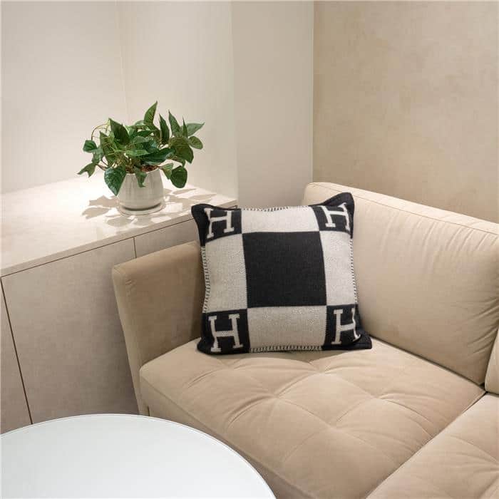隅を彩るH文字が特徴的な《アヴァロン》。 熟練の職人技と精密な機械技術が融合したエルメスの代表作です。 ブランドを象徴する「H」が四隅にあしらわれ、上質なメリノウール/カシミヤの手触りが極上のひとときを演出します。 カラーバリエーションも豊富で色違いで揃えたくなる、プレゼントにもおすすめのクッションです。