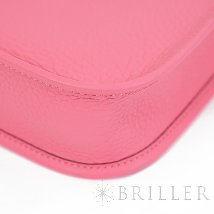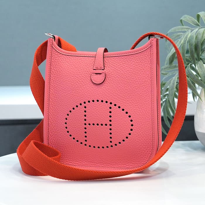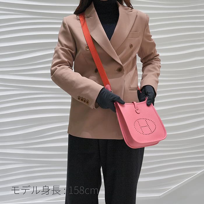 馬の蹄鉄をイメージして作られた「エヴリン」は、カジュアルに普段使いできる人気のショルダーバッグです。 前面にエルメスの頭文字「H」マークを大きくパンチングしたデザインが特徴で、一目でエルメスのバッグを分かります。TPMはコンパクトなサイズ感で、おでかけの必需アイテムであるミニ財布やキーケース、コンパクトなどは難なく収納することができます。肩掛けにも斜め掛けにもでき、その日の気分やファッションによって変えてお楽しみいただけます。ローズアザレの明るい色合いがお出かけ気分をさらに盛り上げてくれそうです。