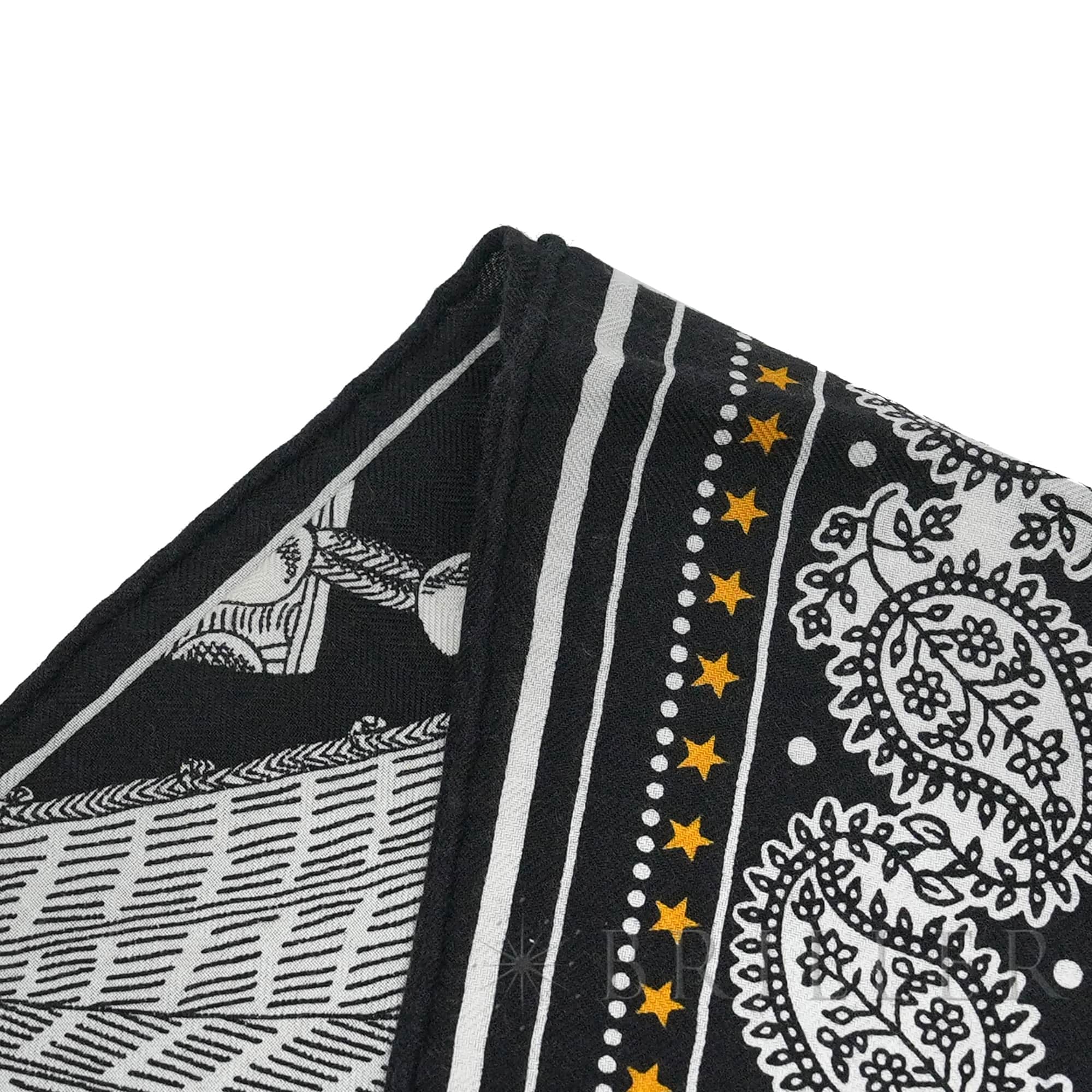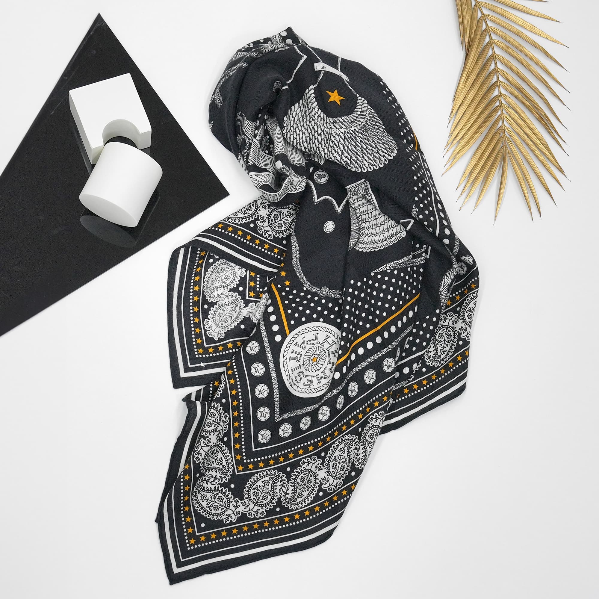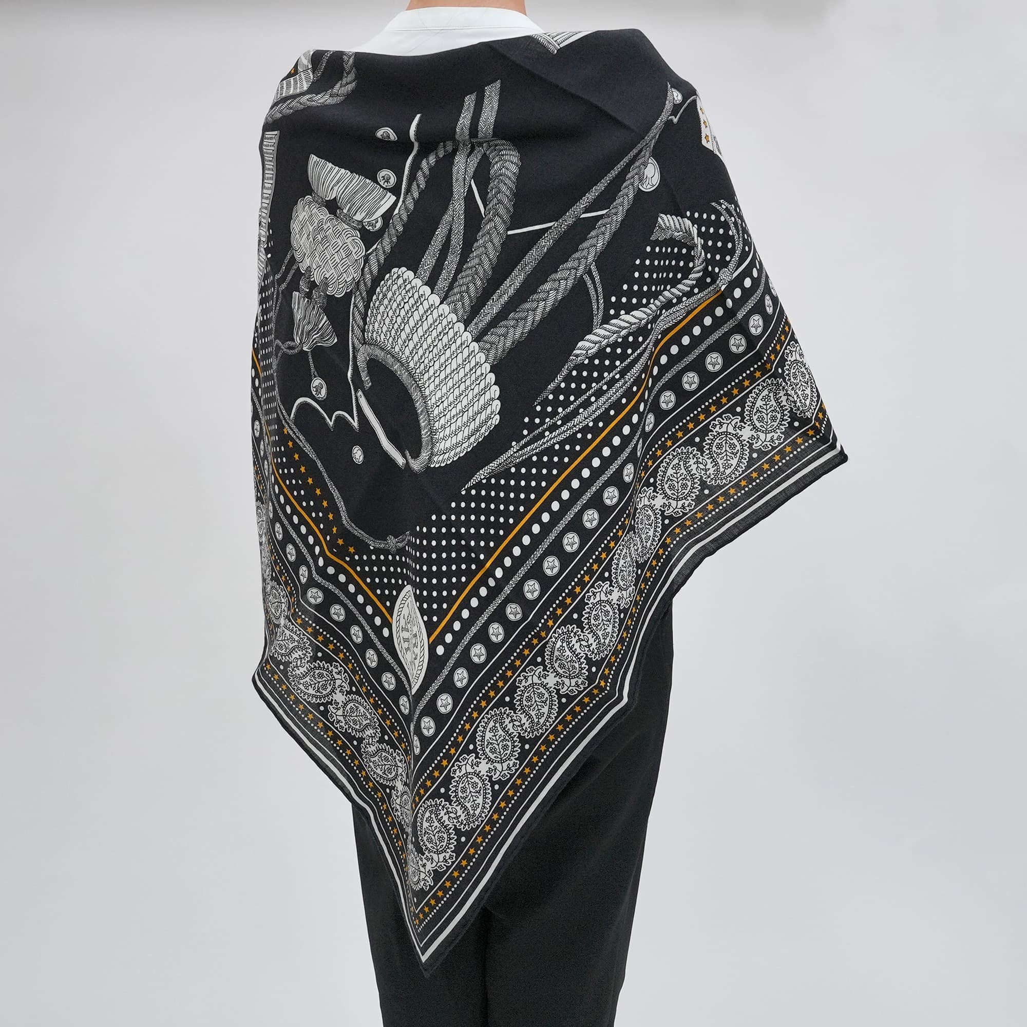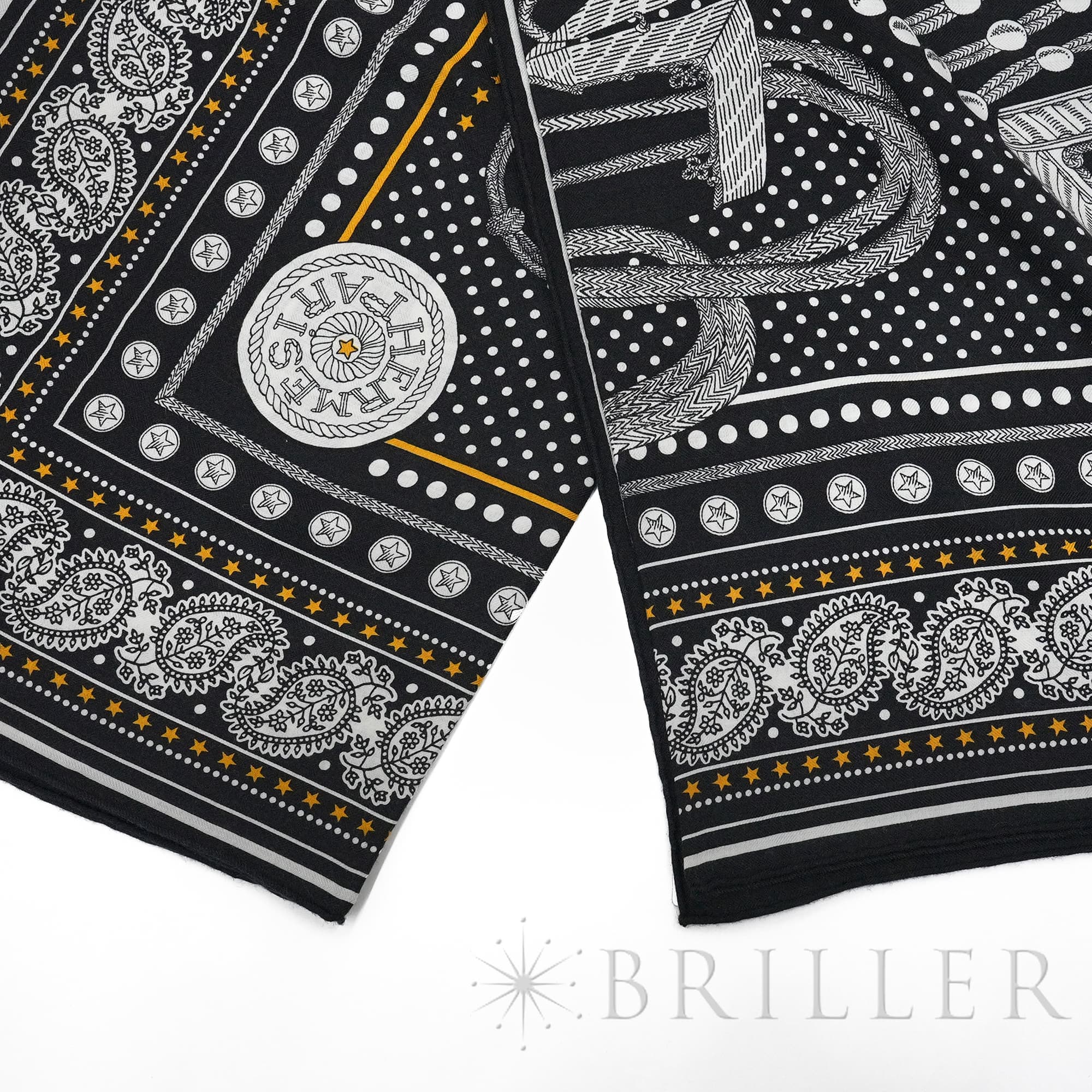 エルメス カレ ジェアン 140 ズアヴとドラゴン・バンダナ H244048S 03 HERMES エルメスの大判スカーフ「カレジュアン」。カレジュアンは、軽やかで柔らかい手触りと多彩なアレンジにより色々な使い方ができ、一枚巻くだけでさまざまなコーディネイトを美しく引き立てます。手作業で縁かがりを施しているため、サイズには個体差が生じます。ヴィルジニー・ジャマンによるデザインの「ズアヴとドラゴン・バンダナ」。ズアヴとは、当時フランスの植民地であった北アフリカで編成された軽装歩兵隊。一方のドラゴンは、馬上で、あるいは馬を降りて戦った竜騎兵隊。双方の名を冠したカレです。