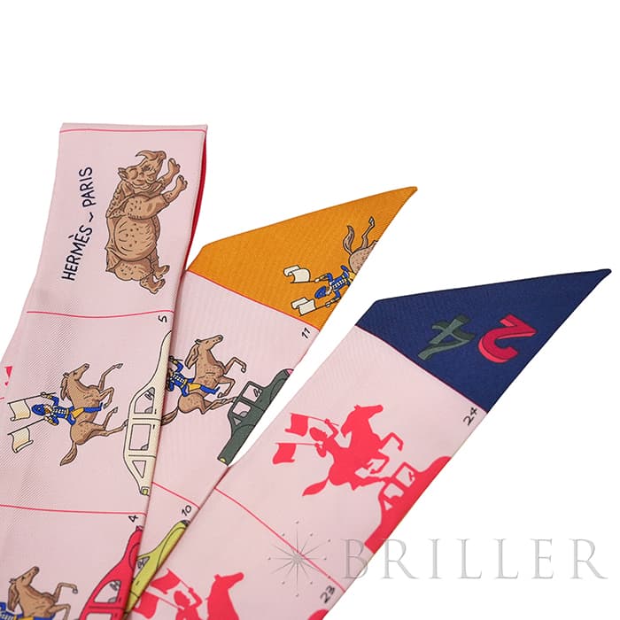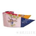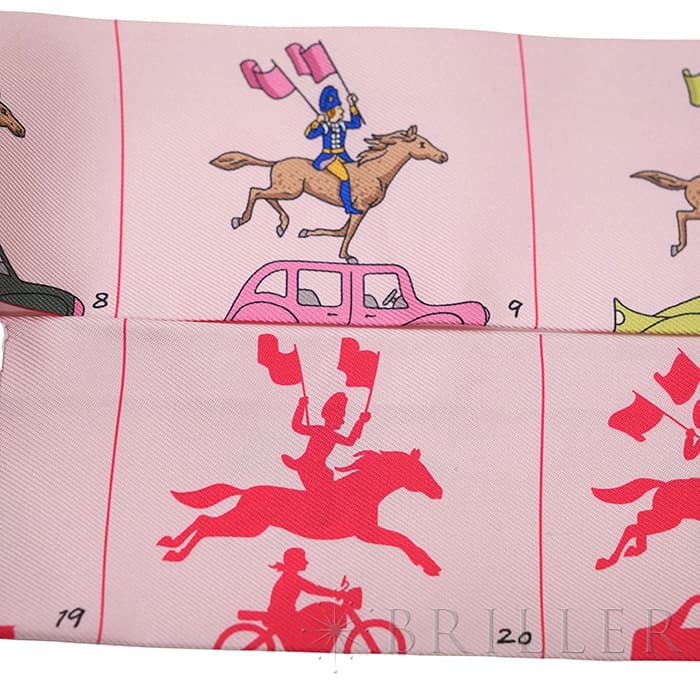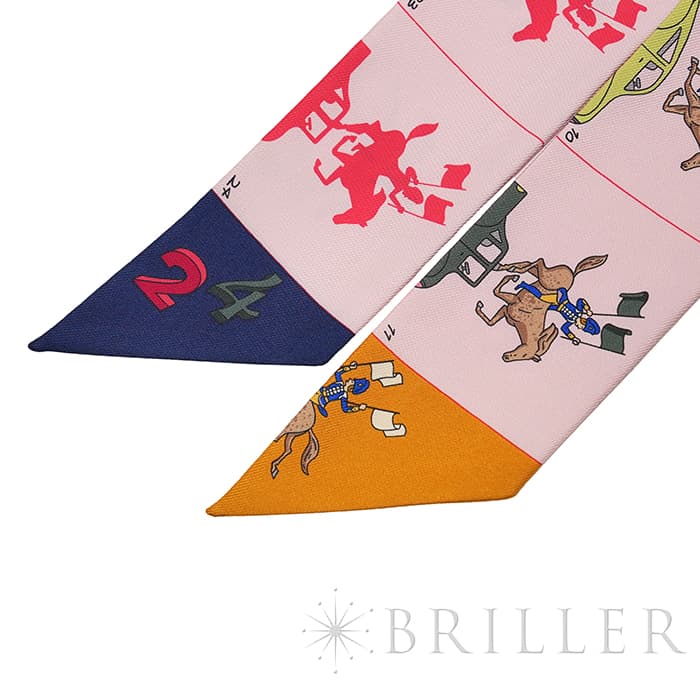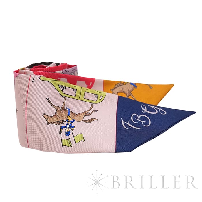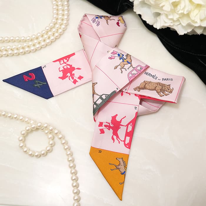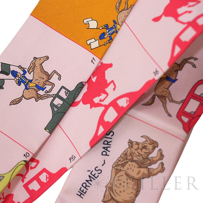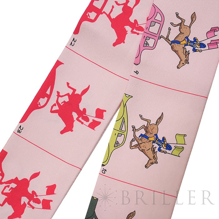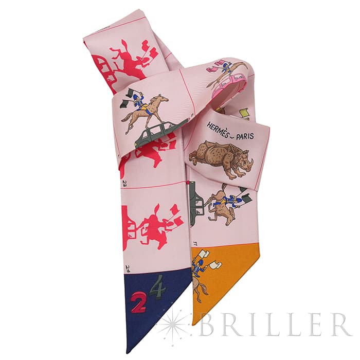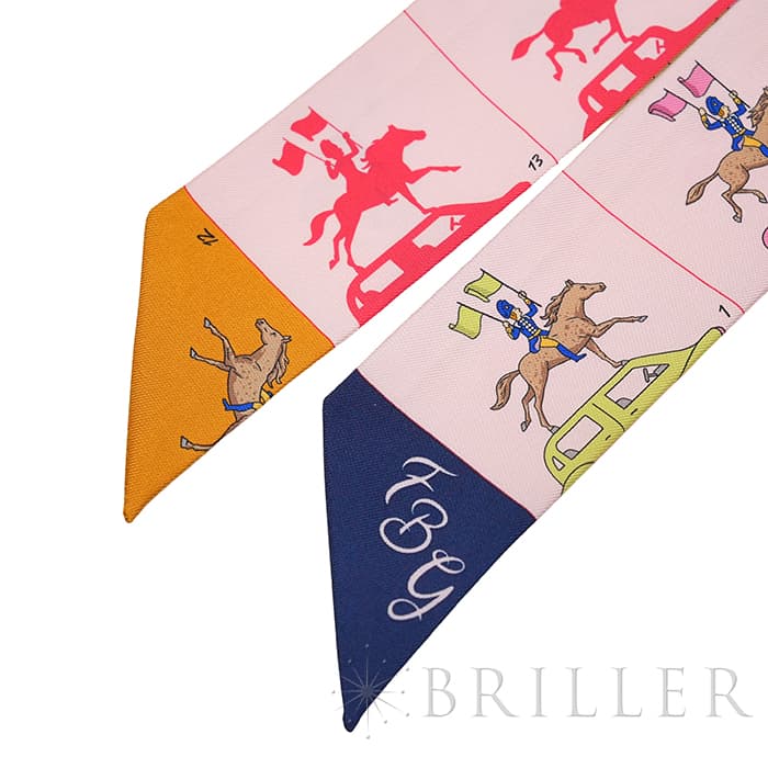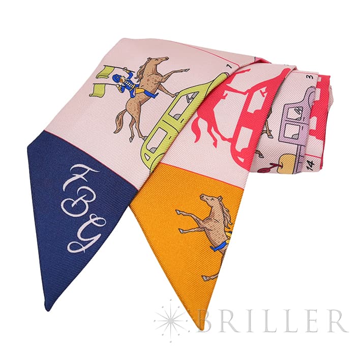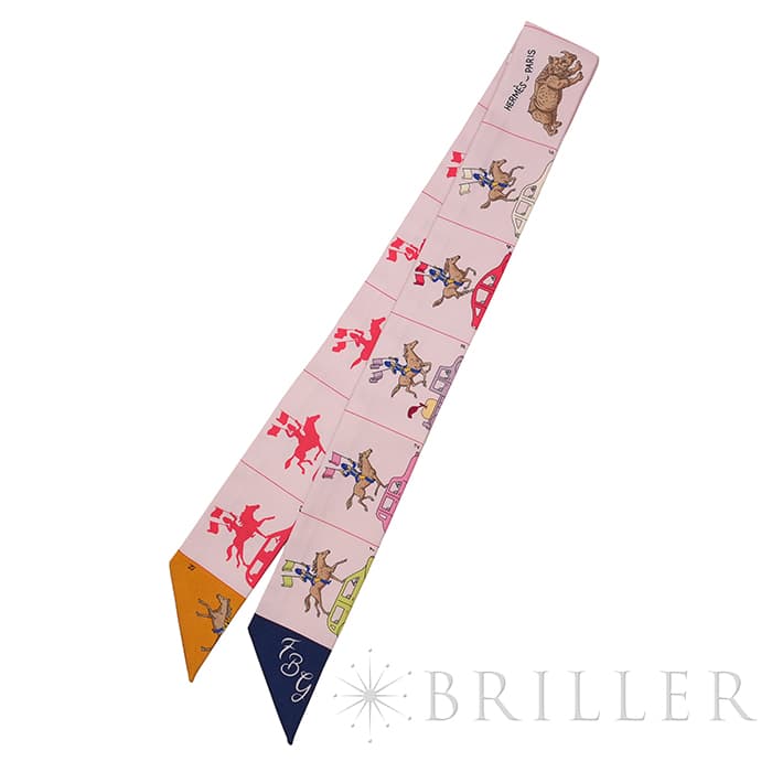 エルメス ツイリー エルメス・パラード ローズ・パール / マリン / マルチカラー H064150S 06 HERMES エルメスのシルクは優れた品質と、デザインに対しての情熱、ふんだんに取り入れた遊び心やユーモアがあふれています。ハンドルにくるくると巻いていただくと、ガラリとお手持ちのエルメスの印象が変わります。マルチカラーなので、巻き方を変えて頂くと更に楽しみの幅が広がります。ハンドルの汚れ防止にも一役買いますし、もちろん自身のファッションにもお使いいただけます。ヘアバンドにしたり、首に巻いたりとユースフルな「ツイリー」を是非ご検討ください。こちらは2024秋冬コレクションで登場した「エルメス・パレード」です。 デザイナーであるジョナサン・バートン氏が手掛けました。 エルメスの祝祭をイメージしデザインです。